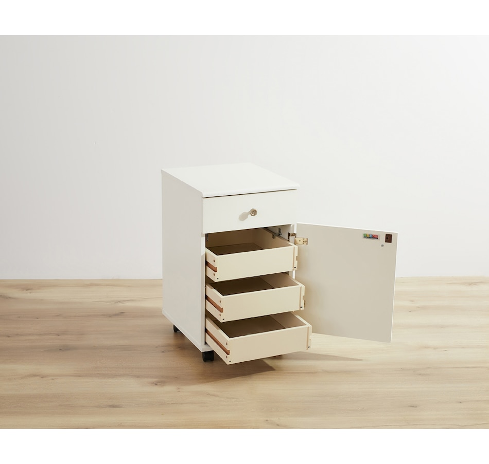 • Dimensions: 14.25"W x 16.5"D x 24.5"H (cabinet); 11.5"W x 13"D x 4.25"H (top drawer); 11.5"W x 13"D x 5.5"H (bottom drawers)