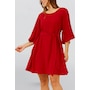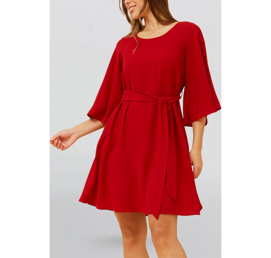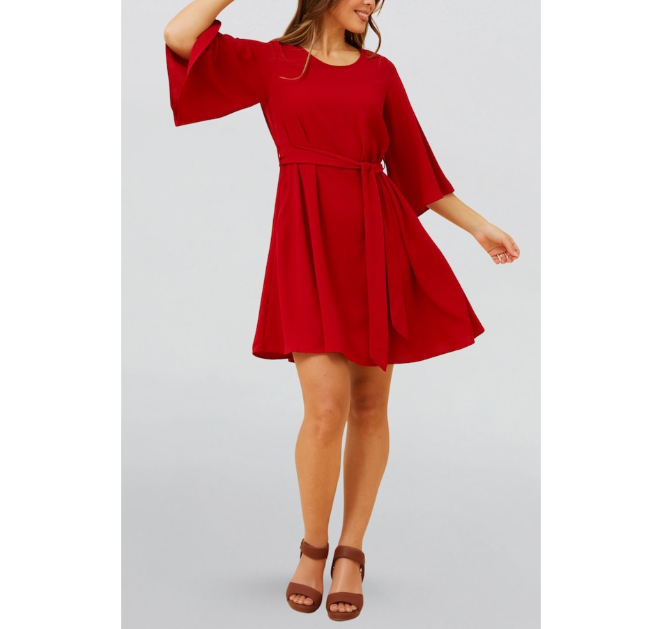 Effortless elegance meets everyday ease in the Jennifer dress, designed with flowy flared sleeves and a flattering self-tie waist. Crafted in a soft, fluid fabric, this versatile A-line silhouette cinches at the waist to create a perfectly feminine fit. Whether you’re heading to brunch, a special dinner, or just want a polished day-to-night look, Jennifer delivers timeless charm in your choice of classic black or bold rich red.