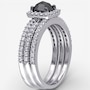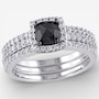 Jewel of a Deal 10K White Gold Black Cushion & White Diamond 3PC Ring Set