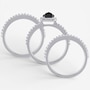 This three‑piece ring set showcases the bold contrast of a faceted black diamond paired with the refined sparkle of white diamonds. The cushion‑cut centre stone creates a striking focal point, while the coordinating bands add elegant brilliance and depth to the overall design. Finished with dark rhodium accents and polished detailing, the set offers a dramatic yet sophisticated statement.
