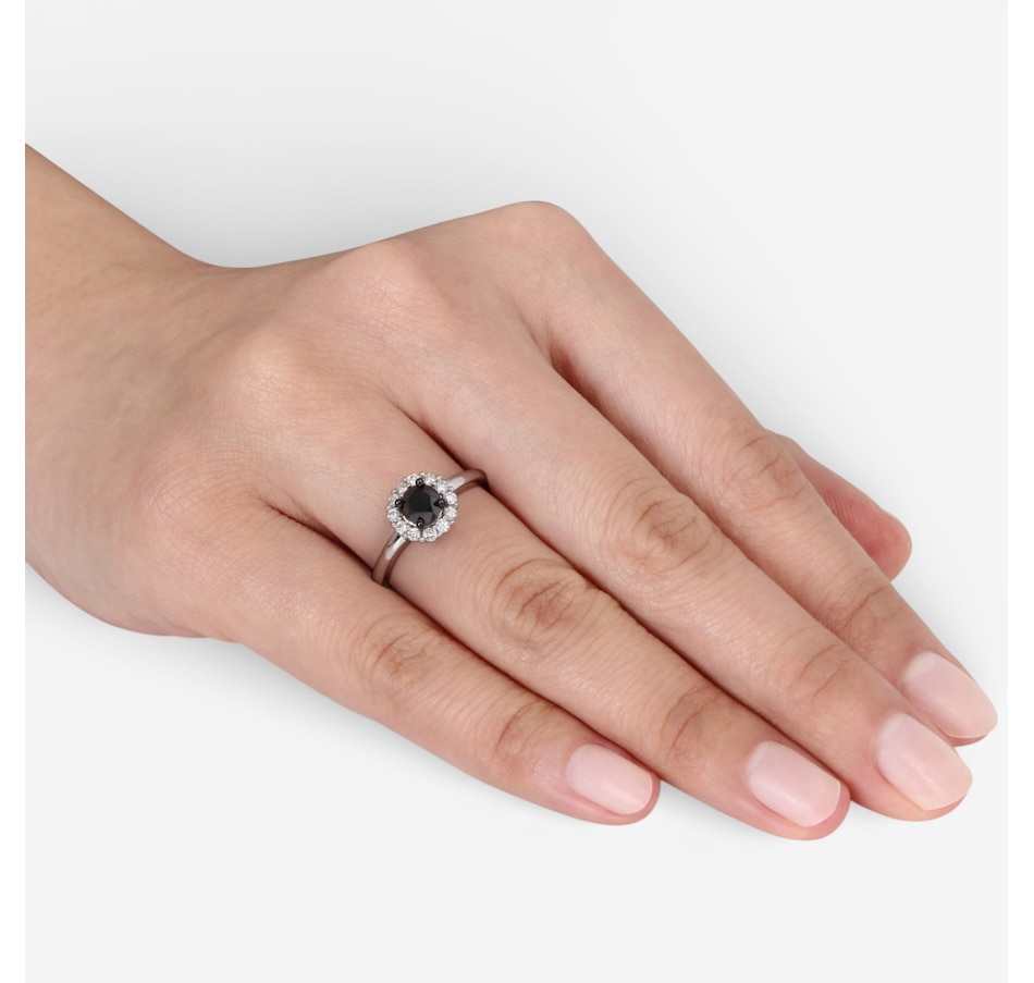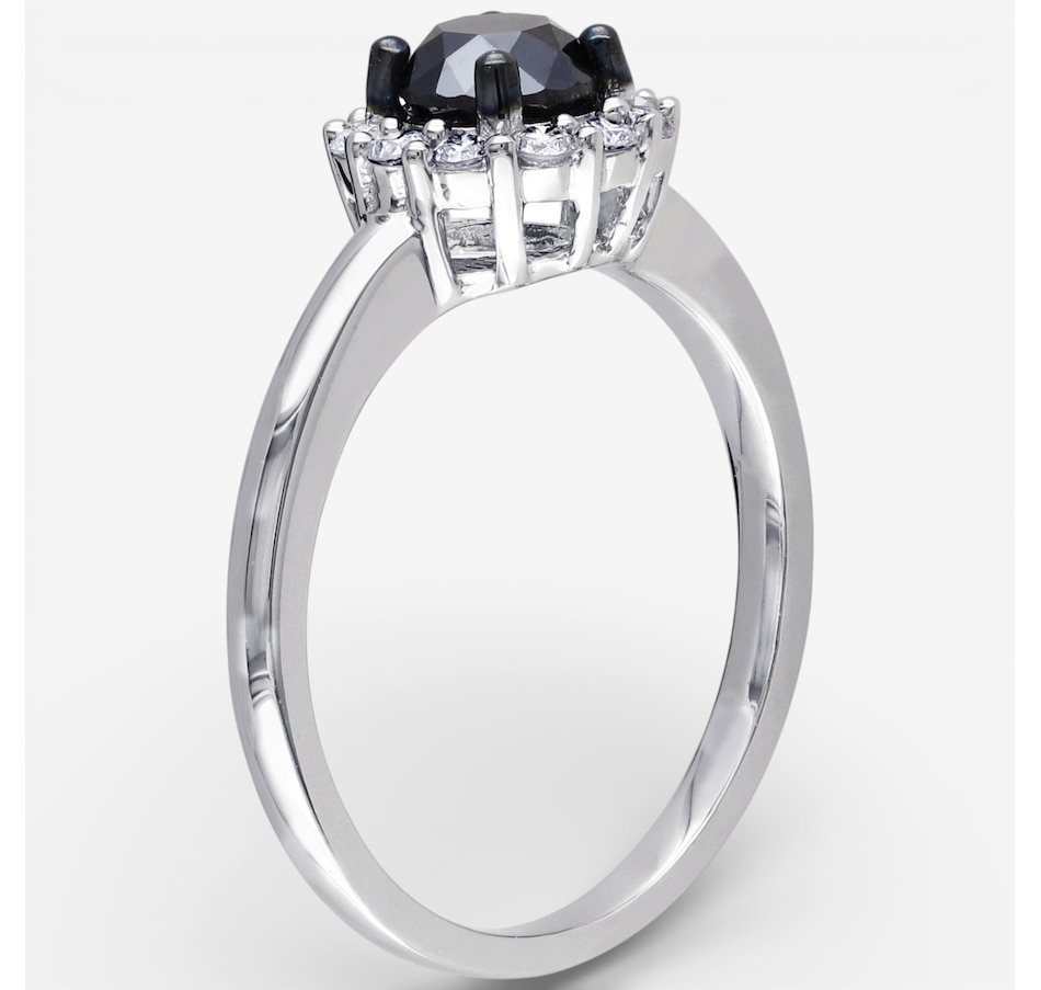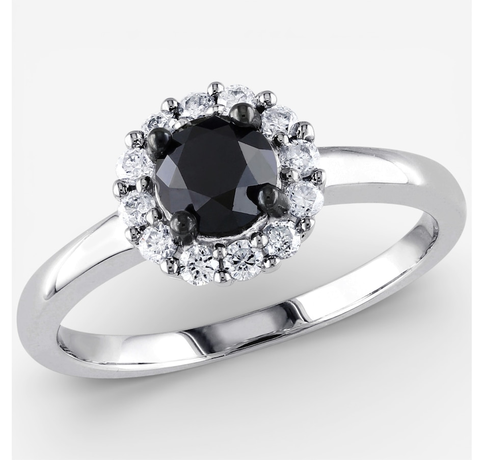 Jewel of a Deal 10K White Gold Round Black & White Diamond Halo Ring