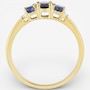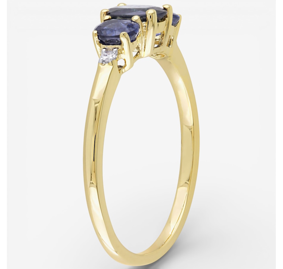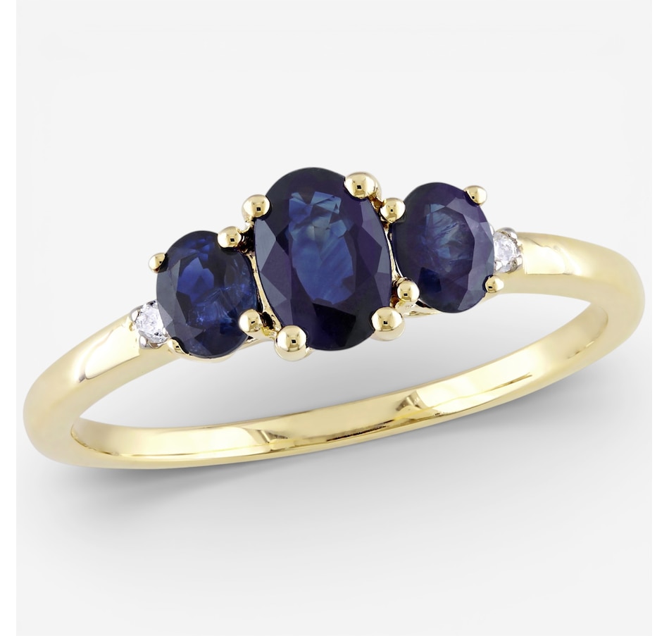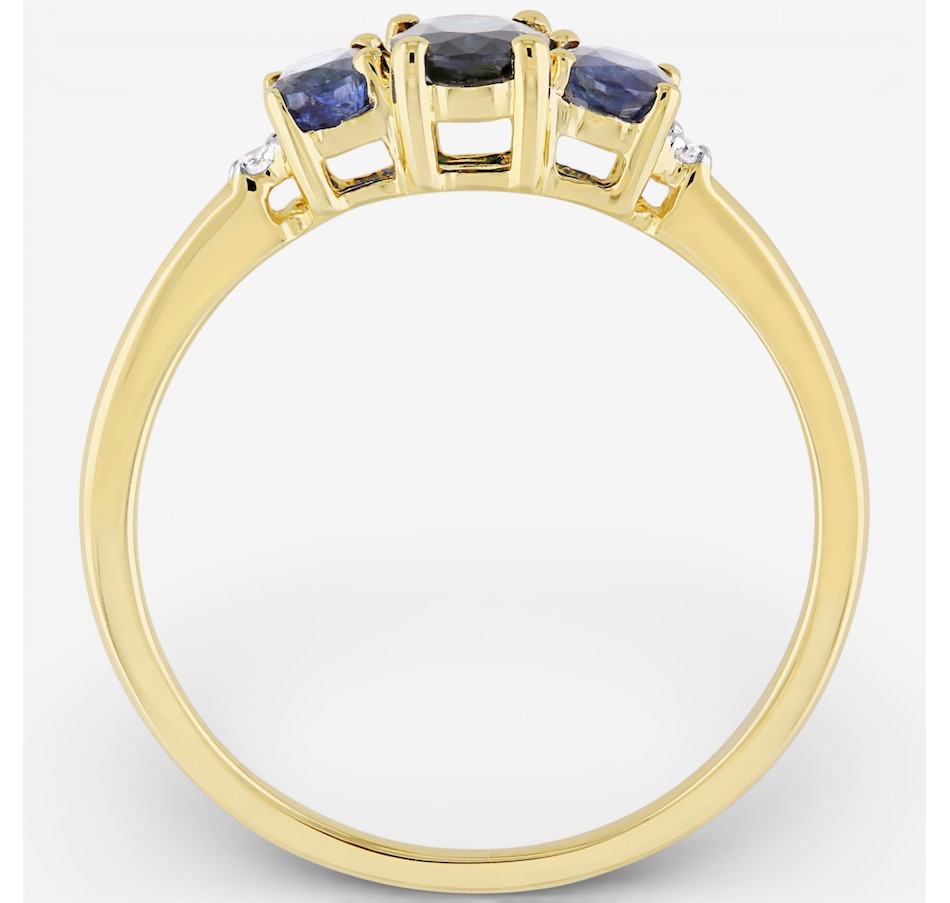 This ring features a beautiful trio of sapphires accented by the delicate sparkle of diamonds for a timeless, elegant look. The faceted stones add depth and brilliance across the polished band, creating a classic design with refined symmetry. Smoothly finished for comfortable wear, it brings sophisticated colour and shine to any jewellery collection.