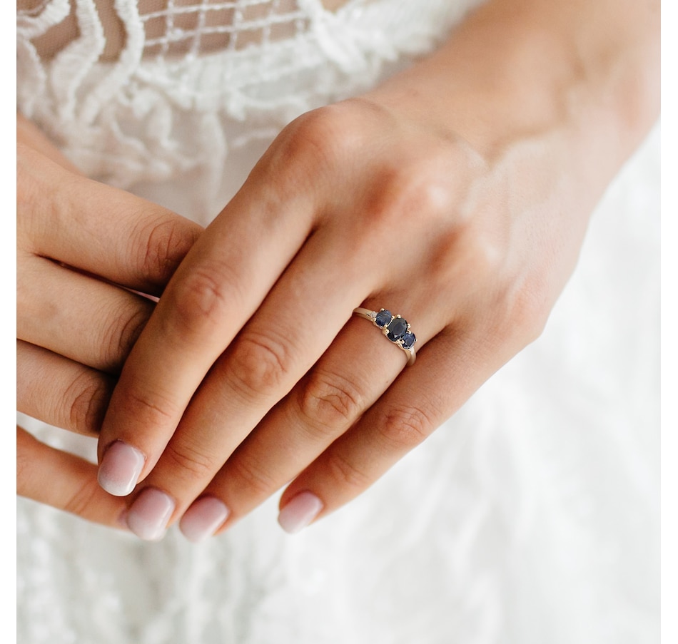 • (1) 6x4mm oval, prong set and faceted sapphire (0.60 av. ctw)