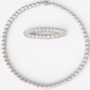 This set highlights the soft lustre of freshwater cultured pearls, paired in a coordinated necklace-and-bracelet design. The off‑round pearls add natural texture and gentle shine, offering a timeless, elegant look. Lightweight and polished, the pieces add a refined touch to any jewellery collection.