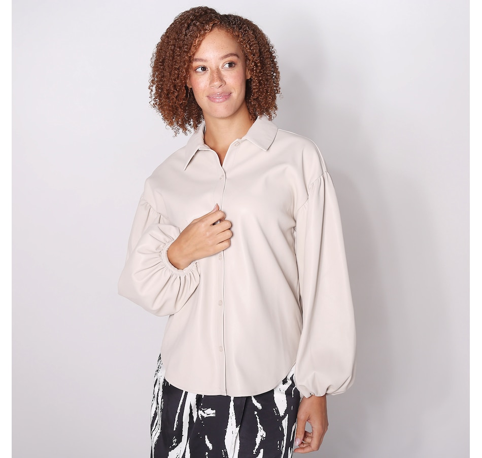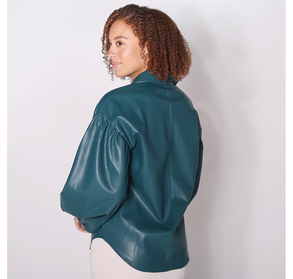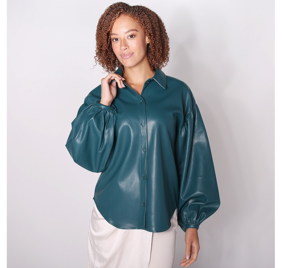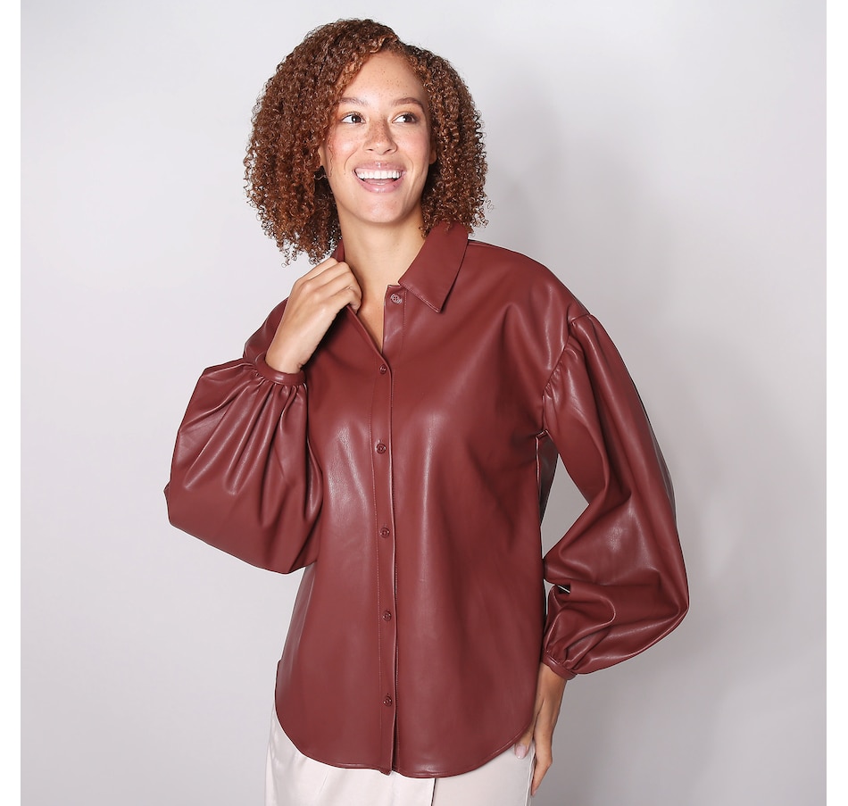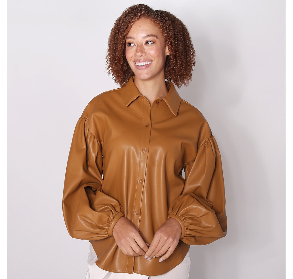 Centre your fall look in stunning style with this balloon sleeve faux leather shirt from Jhoan Sebastian Grey.