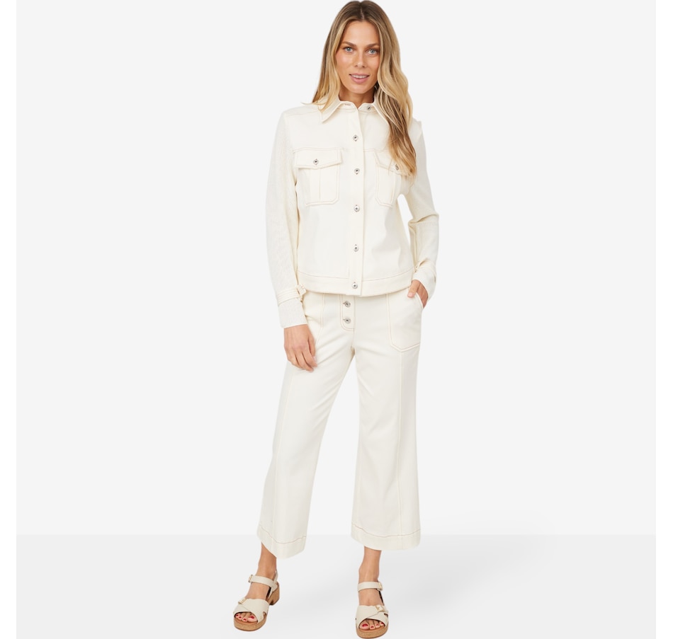 Elevate your look in beautiful, easy style wearing this knit denim cropped capsule pant from Jhoan Sebastian Grey.