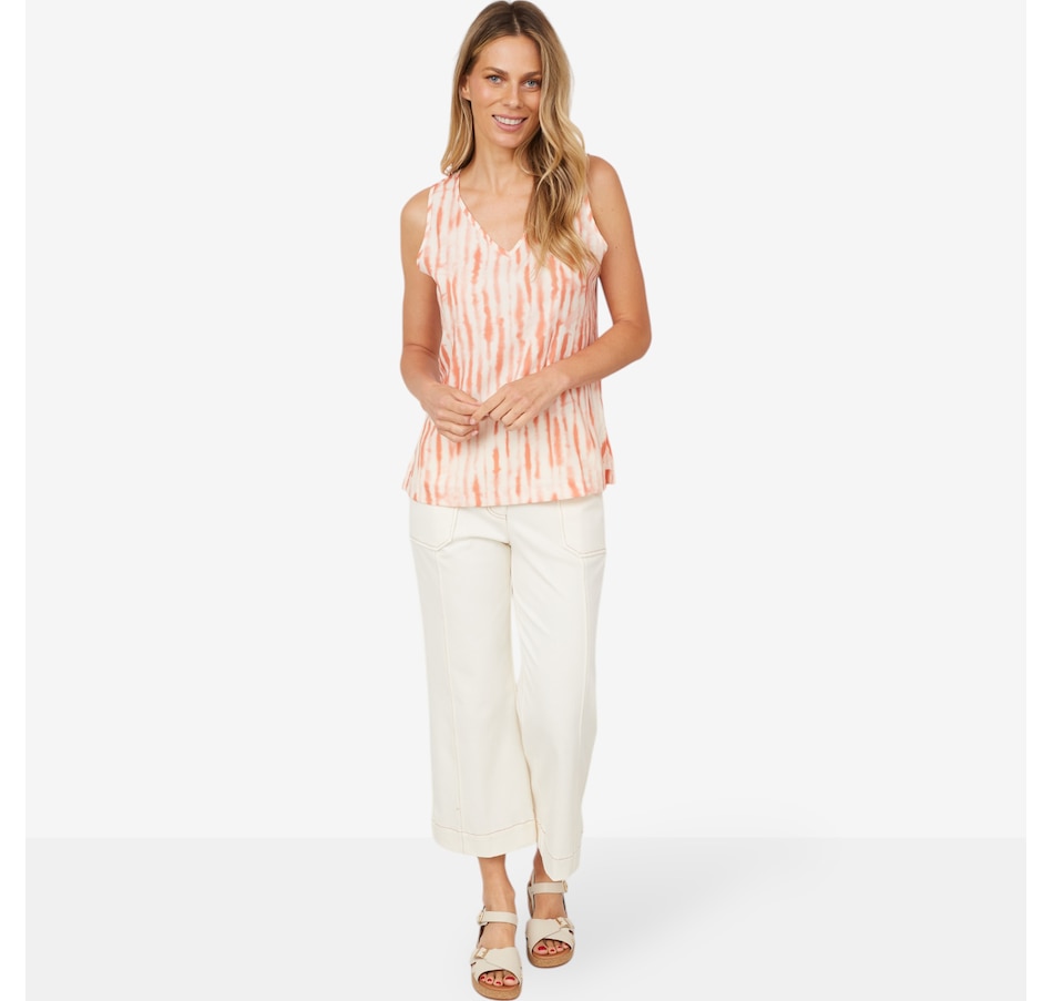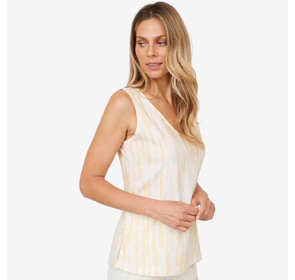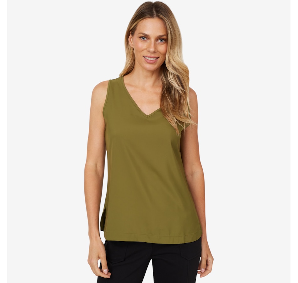 • Semi-fitted, sleeveless, v-neckline, pull-on