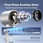 The combination of a three-phase brushless motor and a 5000mAh battery significantly improves the wind speed, power, and endurance of the Pro1 S. The highest rotation speed of this handheld fan is three times that of a regular personal fan, reaching up to 15,000 RPM, and it can cool for 3-15 hours on a single charge.