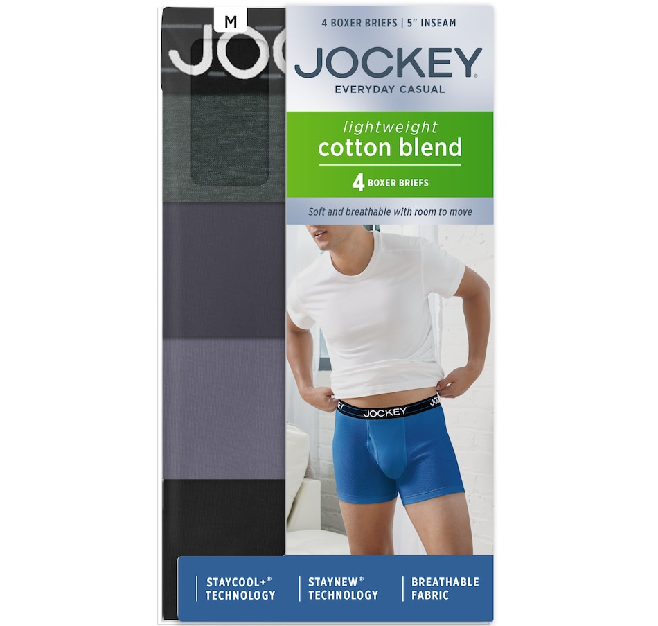 Soft and breathable with room to move, the Jockey Everyday Casual boxer brief is the go-to underwear for all-day comfort. The lightweight cotton blend fabric feels soft against your skin and the ultra-soft flex waistband doesn't dig or pinch. Staycool technology helps wick away moisture and fight odour to help keep you cool and dry, while StayNew technology helps keep your underwear looking and feeling new, wash after wash.