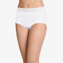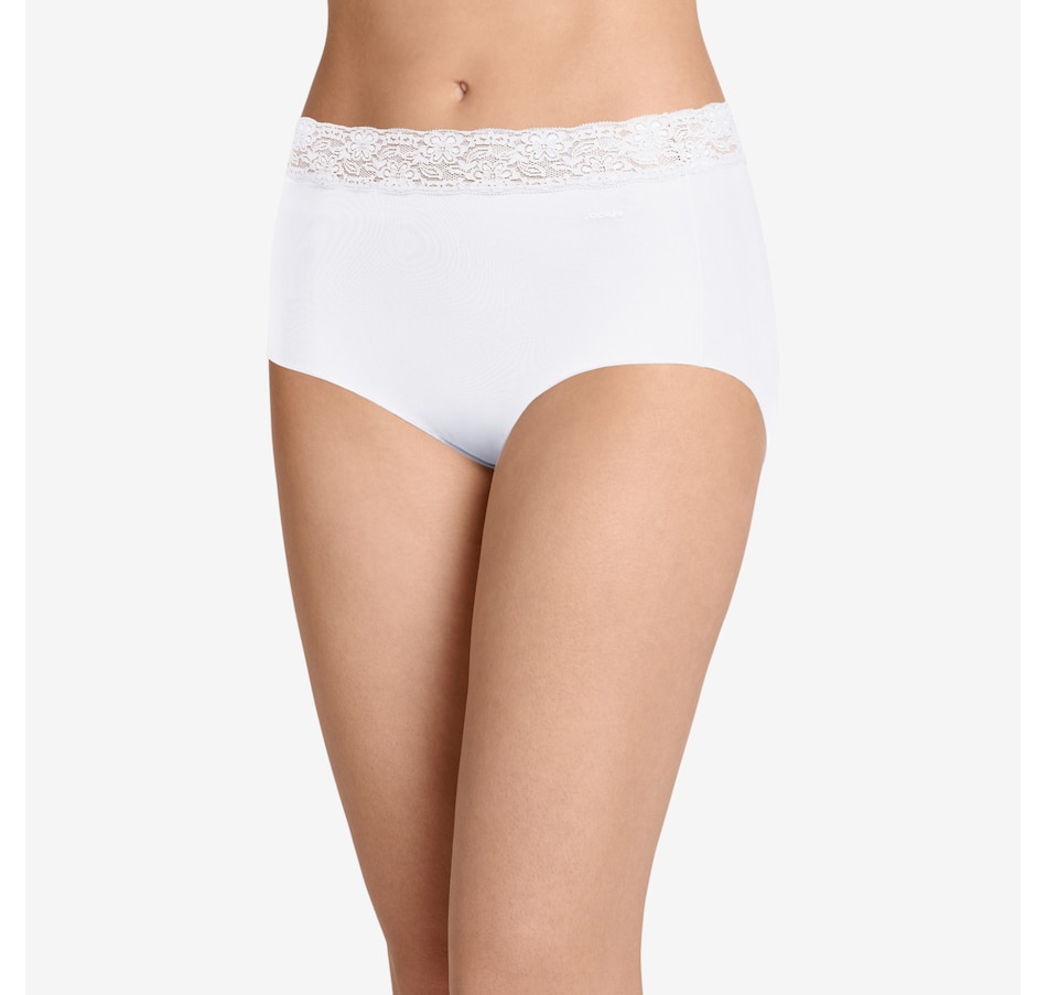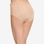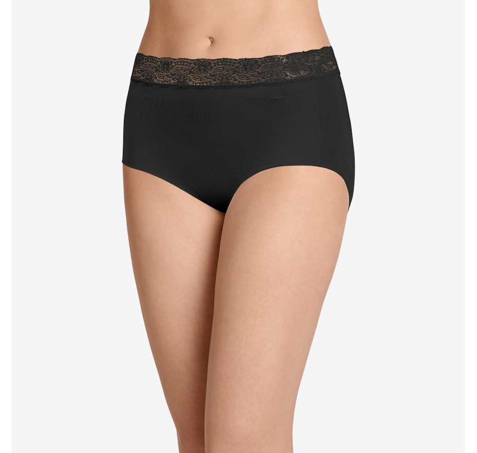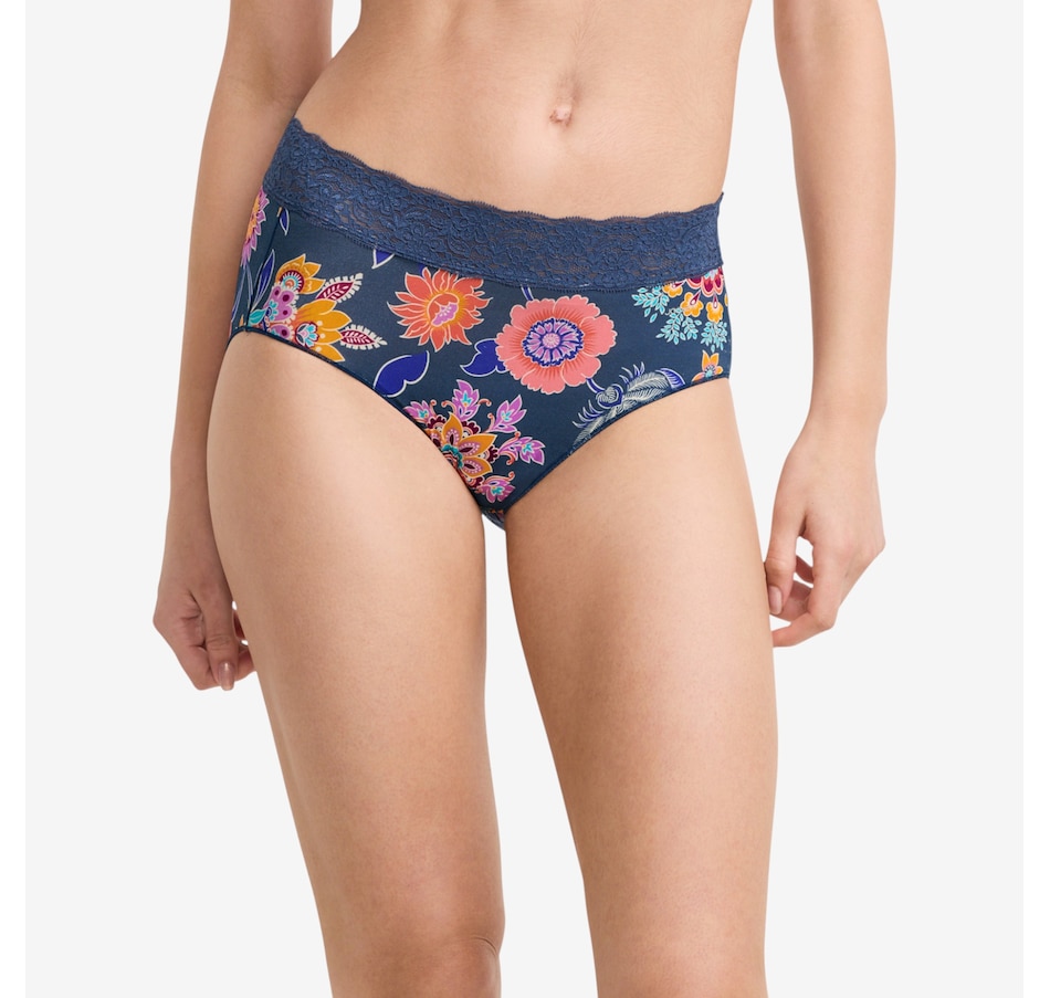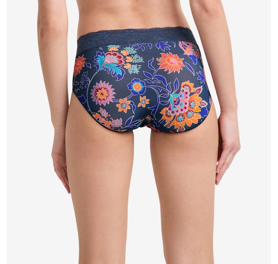 The squared-off legs of this brief feature a unique leg binding that helps eliminate panty lines. The Tactel nylon and Lycra spandex composition offer a smooth, silky feel with plenty of stretch, and the soft, wide lace waistband lies flat for all-day comfort.