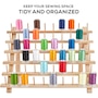 Keep your sewing space tidy and organized with the JumblCrafts 60-Spool Wooden Embroidery Thread Holder with Hanging Hooks. This embroidery thread organizer rack will keep your needlework station orderly and mess-free. Place all your different-sized spools on this convenient, versatile thread spool holder rack from spools to cones, to bicones. Once your spools are on the thread stand rack, you can display this beautiful, all-natural wooden sewing thread organizer anywhere in your home. Show off your colorful collection of thread on a finely crafted display. Use the freestanding legs to set up the stand alone thread holder on a tabletop or raise up the hanging hooks and mount the rack onto the wall. No matter how you display it, be relieved knowing all your threads are now neatly racked up. Add a JumblCrafts Wooden Thread Holder to your cart today!