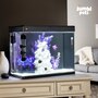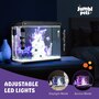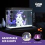 Raise and care for any kind of fish with the JumblPets Premium Aquarium Kit. This deluxe fish tank set comes with a high-clarity glass fish aquarium, vibrant LED lighting, an easy-to-maintain filtration system, a submersible thermometer, an aeration kit, a temperature-adjustable heater, a 4” fish net, and an easy-to-read guide that thoroughly explains how to set up your aquarium fish tank setup kit step by step. Set up the internal filtration system of the small aquarium to improve water quality. This filtration system comes with a PRO filter media set that contains a bio sponge, an activated carbon filter cartridge, and ceramic rings to break down contaminants and remove odors within the premium fish tank starter kit. Use the air pump and air stone in the aeration set to continuously circulate oxygen into the water to ensure a clean, breathable environment for fish. Make this aquarium set a perfect place for tropical fish with the shatterproof, easy-to-use heater built with a LED heating indicator. And always know the temperature of the aquarium with the submersible thermometer that can be mounted right onto the glass. Experience having no trouble creating the perfect aquatic home for fish with the JumblPets Premium Fish Tank Full Kit.