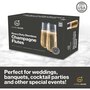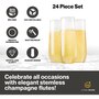 Enjoy your wine or champagne in a glass that beams with elegance. The JumblWare 24 9-oz. heavy-duty, disposable champagne glasses have the power to turn an occasion into something grand. Pour your bubbly drink into a champagne flute that shines with crystal-like clarity. With these plastic champagne glasses, you can enjoy toasting and clinking these glass-like cups together without the worry of chipping or damaging them. These quality wedding champagne flutes are made from durable plastic that is shatterproof. Drink your sparkling beverage from comfortable champagne flutes disposable designed with smooth, rounded rims that make each sip a pleasant one. Host a birthday party, wedding, graduation party, cocktail party, or banquet with gorgeous-looking, stylish champagne flutes. Celebrate memorable occasions the right way with the JumblWare 24 9-oz. heavy-duty, stemless champagne flutes.