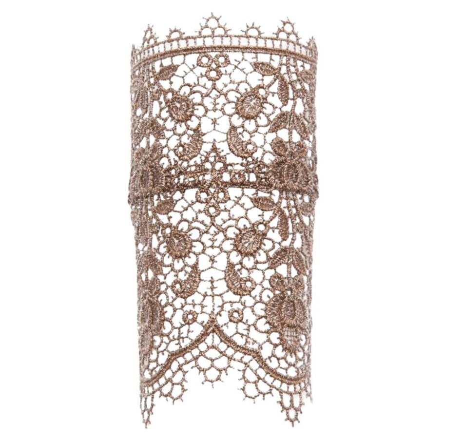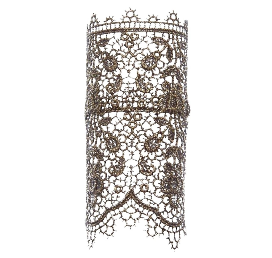 • Choice of oxidized bronze, oxidized black or pewter hand-sewn lace