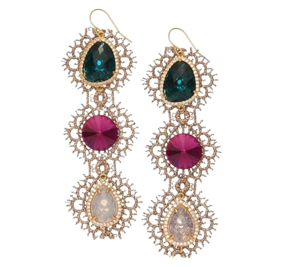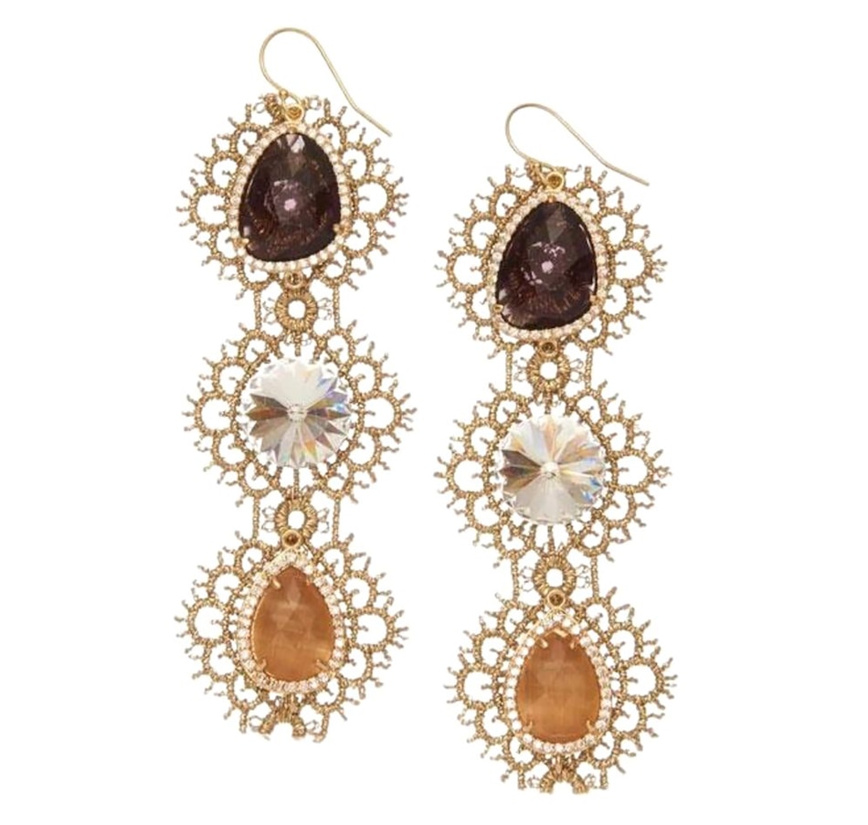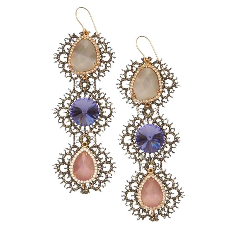 • Choice of lace with (2)19x15.5mm modified triangle shape crystal, (2)14mm round shape Swarovski Rivoli crystal, (2)18x13.5mm pear shape crystal