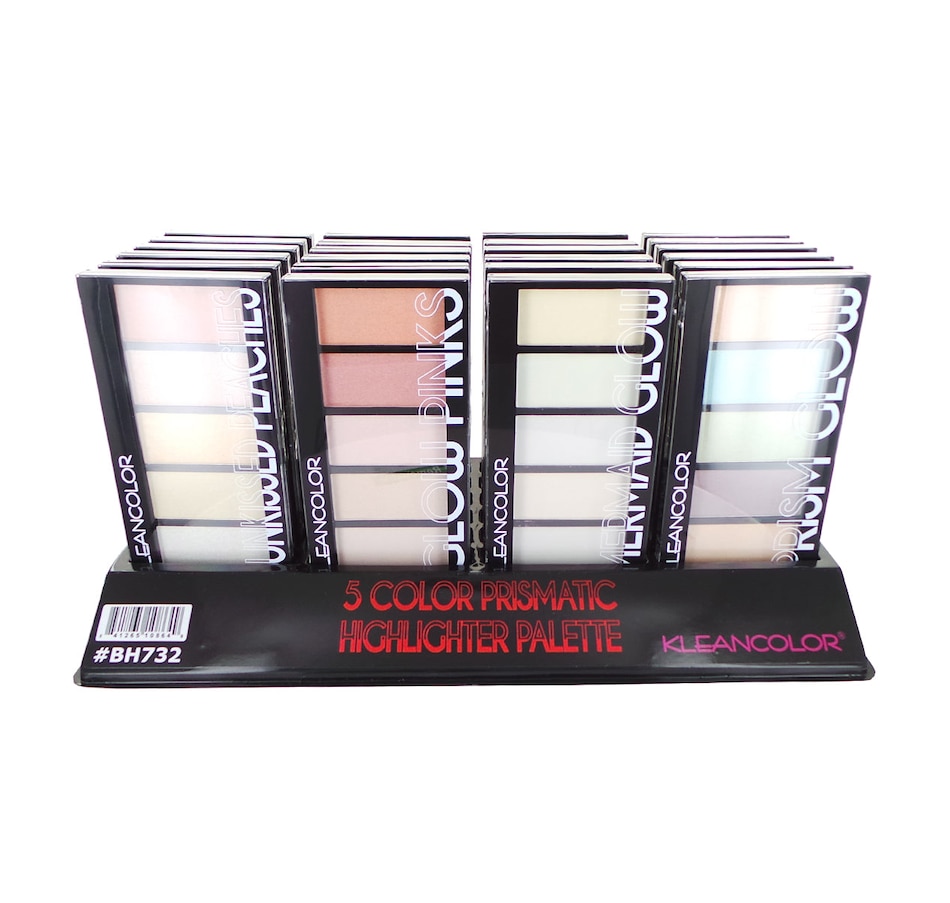 5 Color Prismatic Highlighters give you a holographic highlight whether used singly or mixed for ultra brilliance. Four palettes including choices of shades in peach, pink, mermaid and prismatic radiance to create a dazzling light.- Four choices of palettes- Prismatic effect- Light reflective glow- Soft feel- Can be applied wet or dryDisplay set comes with 6 palettes for each of the 4 shades for a total of 24 palettes.Net Wt. 0.49 oz / 14 g