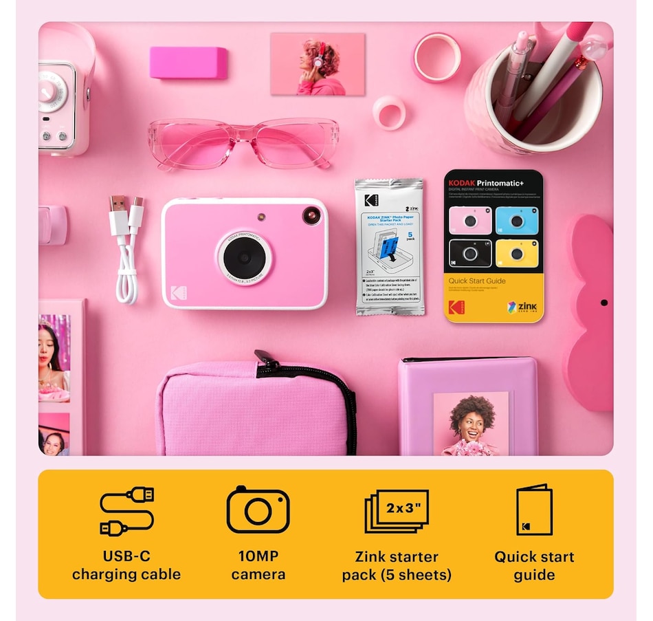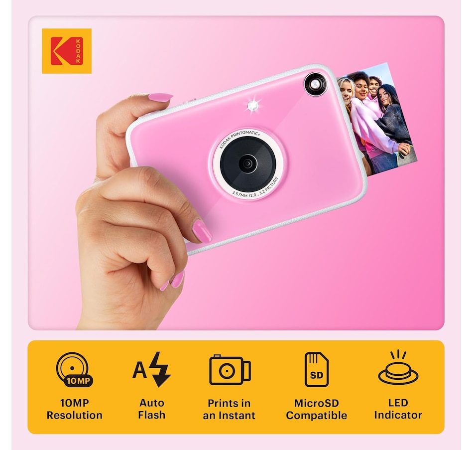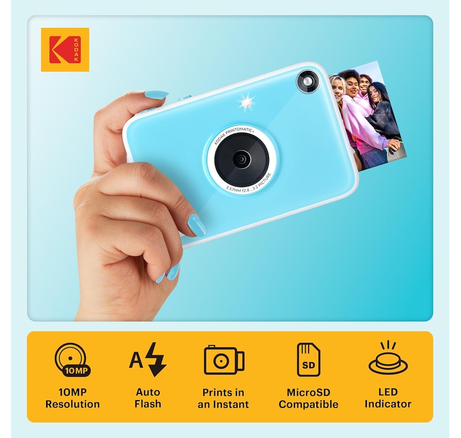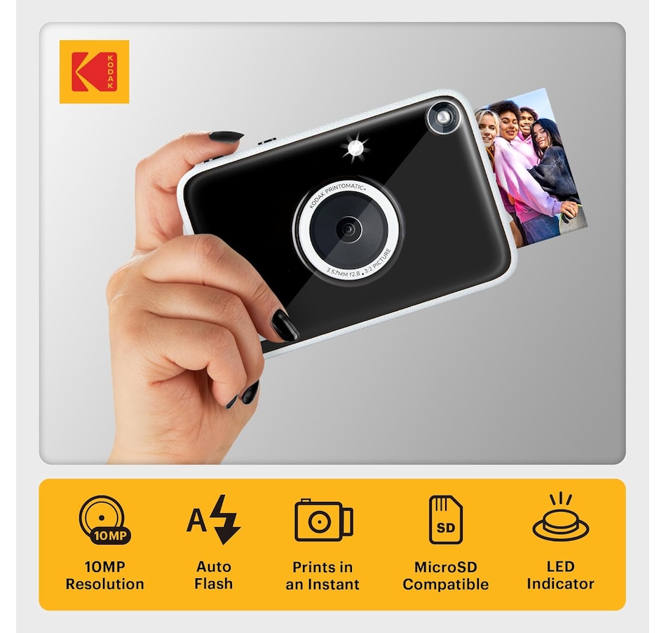 The Printomatic is the ultimate Kodak instant camera that’s packed with everything you need and more! Combining convenience, creativity, and fun, this portable, easy-to-use instant print camera lets you capture every moment on the spot—whether you’re at a party, on vacation, or just enjoying everyday adventures. The 10MP sensor of the instant picture camera ensures sharp, vibrant photos, while the lightning-fast print time means you’ll never miss a moment. Featuring a built-in battery, the instant digital camera it’s always ready for your next adventure, and the interactive LED status indicator keeps you informed when your portable camera is charged, processing, printing, or cooling down. With the camera instant print, simply point, shoot, and print, and watch your memories come to life on durable, smudge-proof, and tear-resistant sticky-backed photo paper—no ink or toner needed. From special events to spontaneous fun, the Kodak instant film camera transforms fleeting moments into long-lasting memories, making it the perfect companion for capturing life’s best moments in vibrant color!