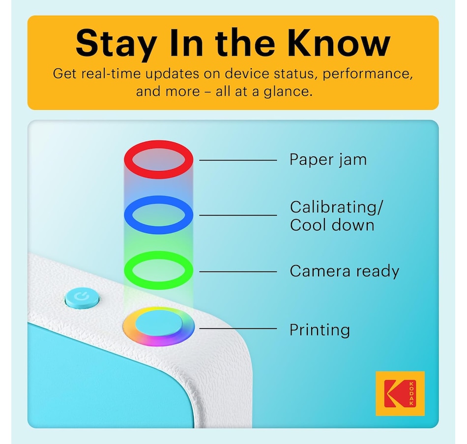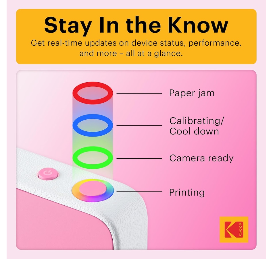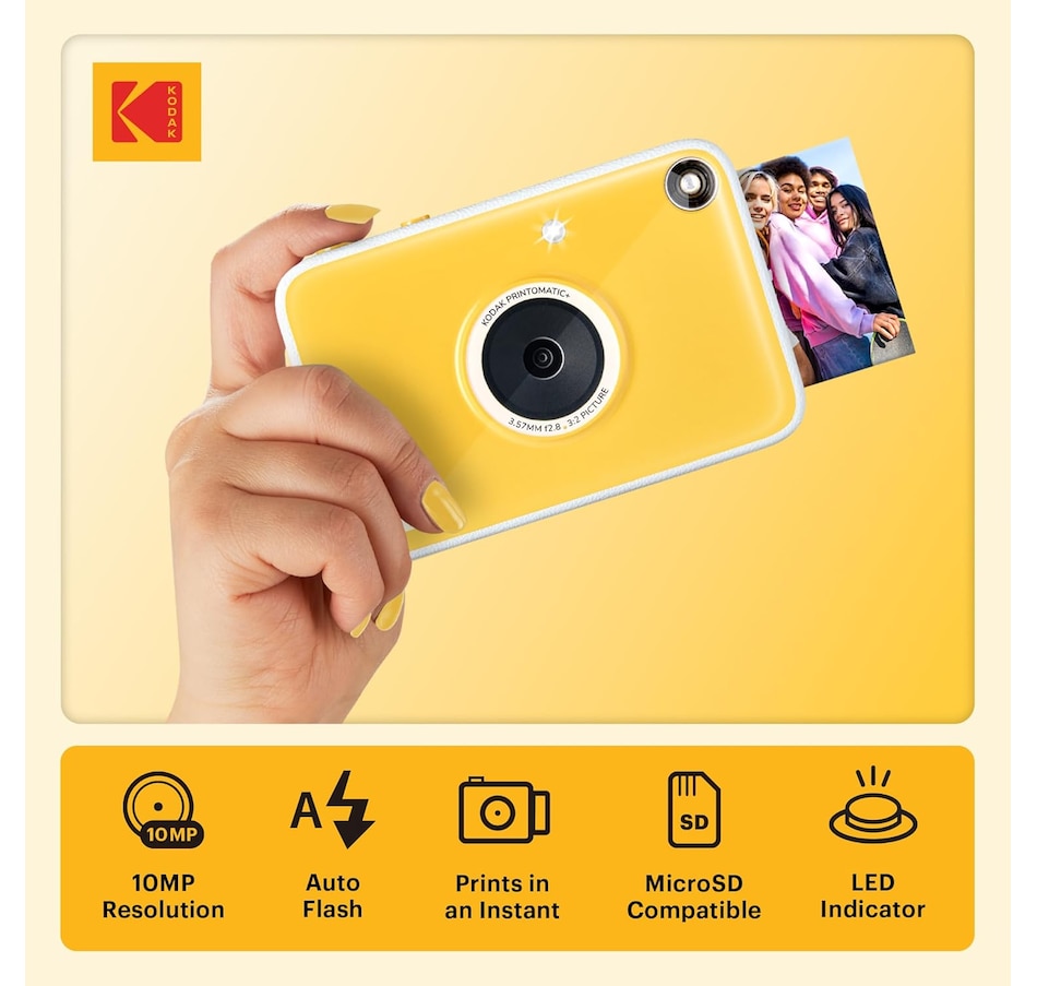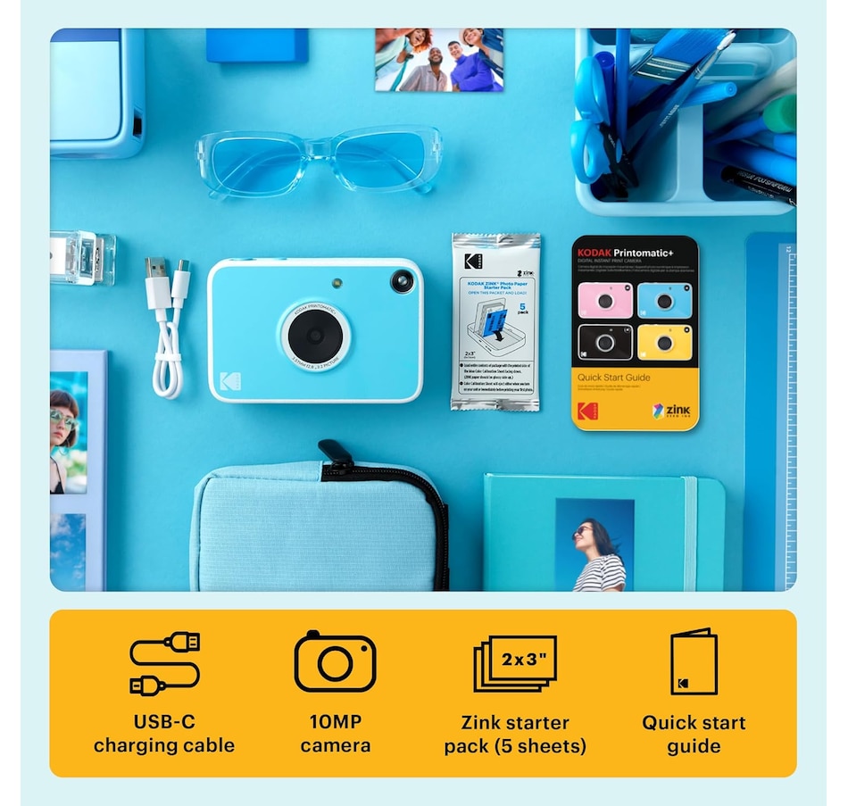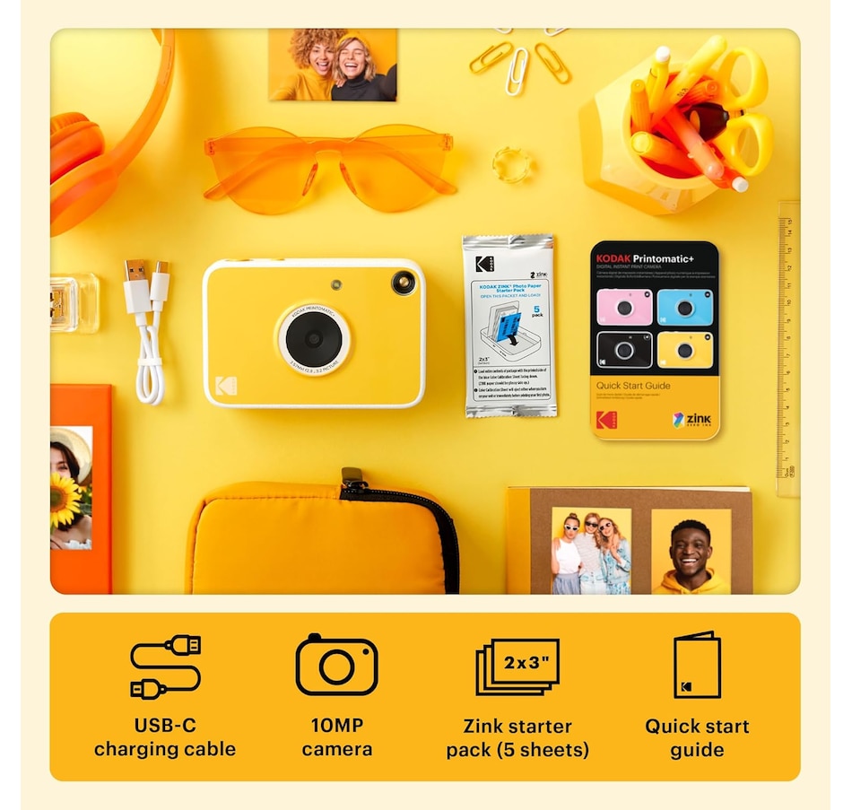 The Printomatic is the ultimate Kodak instant camera that’s packed with everything you need and more! Combining convenience, creativity, and fun, this portable, easy-to-use instant print camera lets you capture every moment on the spot—whether you’re at a party, on vacation, or just enjoying everyday adventures. The 10MP sensor of the instant picture camera ensures sharp, vibrant photos, while the lightning-fast print time means you’ll never miss a moment. Featuring a built-in battery, the instant digital camera it’s always ready for your next adventure, and the interactive LED status indicator keeps you informed when your portable camera is charged, processing, printing, or cooling down. With the camera instant print, simply point, shoot, and print, and watch your memories come to life on durable, smudge-proof, and tear-resistant sticky-backed photo paper—no ink or toner needed. From special events to spontaneous fun, the Kodak instant film camera transforms fleeting moments into long-lasting memories, making it the perfect companion for capturing life’s best moments in vibrant color!