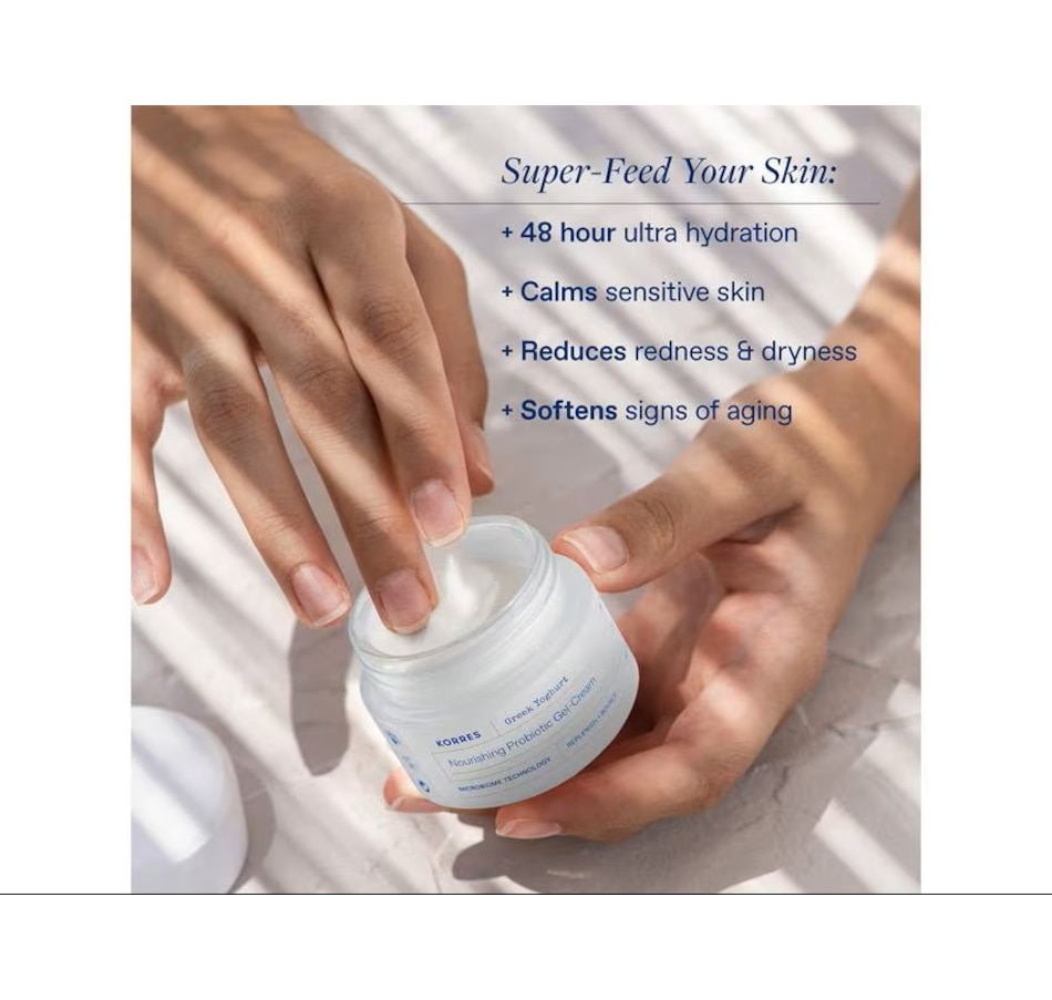 KORRES introduces the only Gel-to-Crème moisturizer with Real Greek Yoghurt infused with probiotics, melts into your skin and unlocks time-released 48-hour hydration to keep your skin smoothed and moisturized throughout the day. This rich but lightweight Gel-to-Crème moisturizer has dual action: it restores skin’s hydration and empowers the skin’s natural moisture barrier against environmental stressors responsible for premature aging.