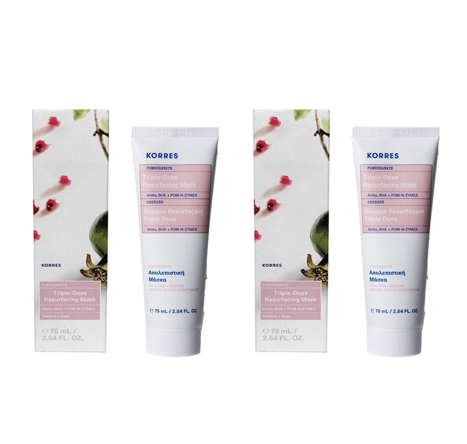 • (2 )KORRES Pomegranate Triple Dose Resurfacing Mask (75 ml)—valued at $45.00 Each