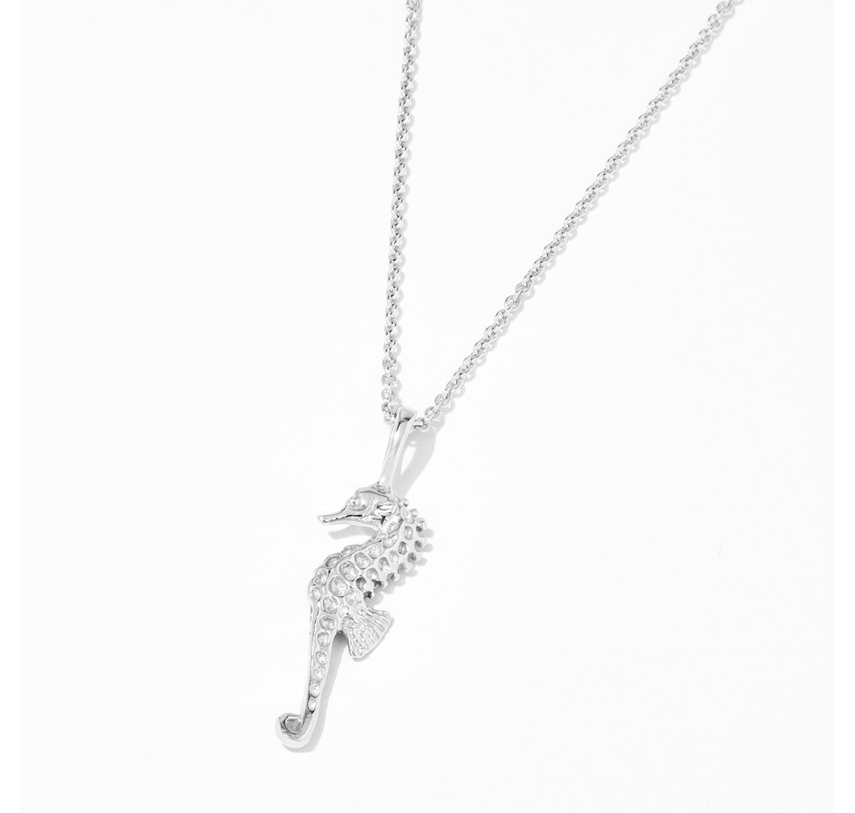 Add something beautiful and playful to your look with this sterling silver seahorse pendant and chain from Kabana.