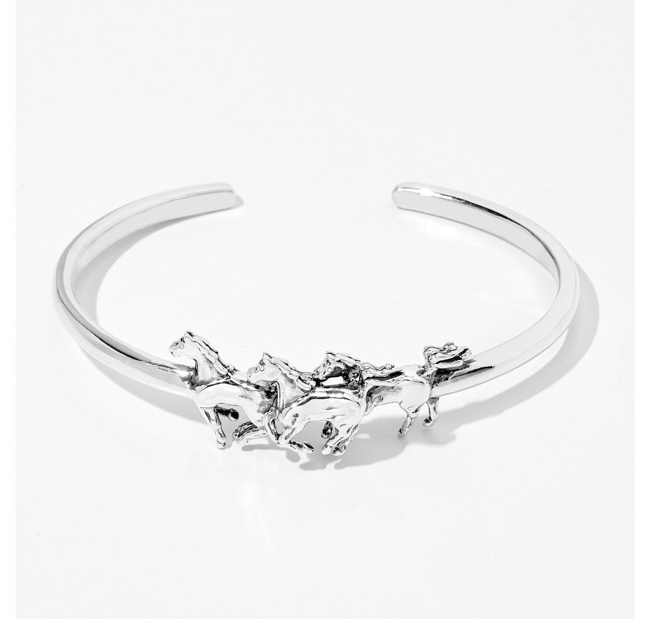 Add something beautiful and classic to your look with this sterling silver running horse cuff bracelet from Kabana.