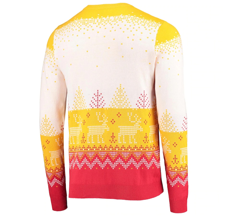 Prepare for this season's inevitable ugly sweater event by grabbing this big logo knit ugly sweater! Its festive design features a bold logo and holiday iconography in a team colourway. Show up ready to support your team and say festive in this comfy knit pullover!