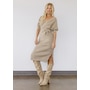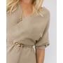 • Slits on both sides, mid-calf length, belt included, stretch-style fabric, smaller fit