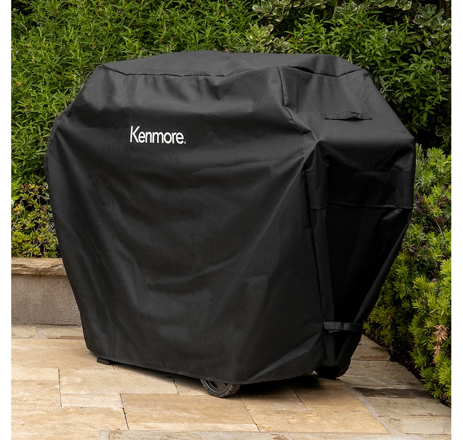 Protect your gas grill from the elements with this vinyl cover from Kenmore. The soft, waterproof material is easy to clean and features heavy duty-gauge polyester backing for added durability, and the ventilation slots and closure strips help ensure that the grill cover stays on even in windy weather.