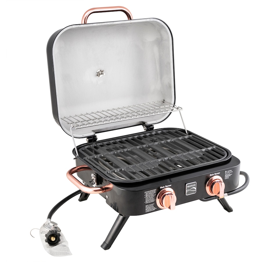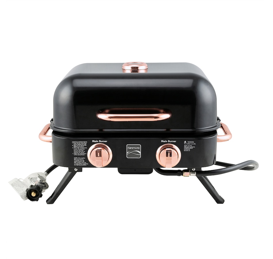 Experience grilling on-the-go with the Kenmore two-burner tabletop gas grill. Compact yet powerful, this portable grill is designed for convenience and style. With two burners for precise heat control and a stylish black and copper finish, it's the ideal companion for outdoor gatherings, picnics, and tailgates. Elevate your outdoor cooking game with Kenmore's commitment to quality and innovation. Wherever you are, ignite the flavour with this stylish tabletop grill!