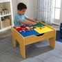 Who knows what fun creations the KidKraft Activity Table with Board will inspire? The reversible tabletop features a smooth, illustrated play surface on one side and a building-brick play surface on the other. It includes almost 200 building bricks to get little engineers started on their first creations. Plus, a 30-piece wooden train set is included for even more exciting fun. When playtime is done, the table top lifts to reveal a storage area underneath. This versatile table is carefully constructed of wood and with rounded corners for years of safe, imaginative fun. The classic natural wood finish will look great in any playroom, bedroom or living room.
