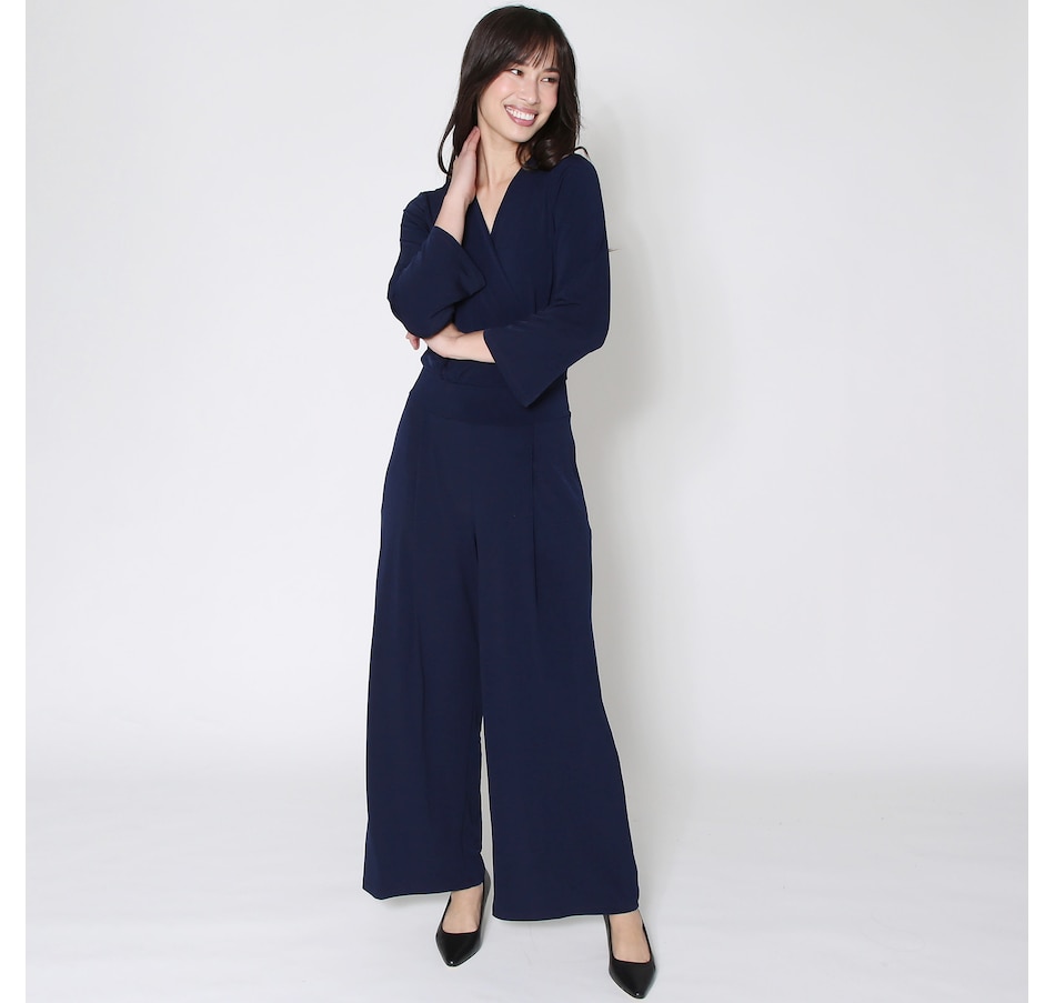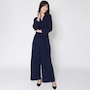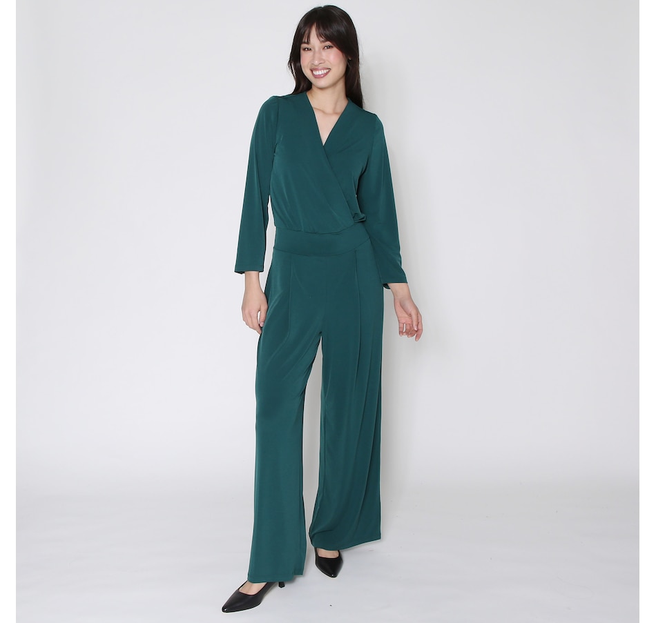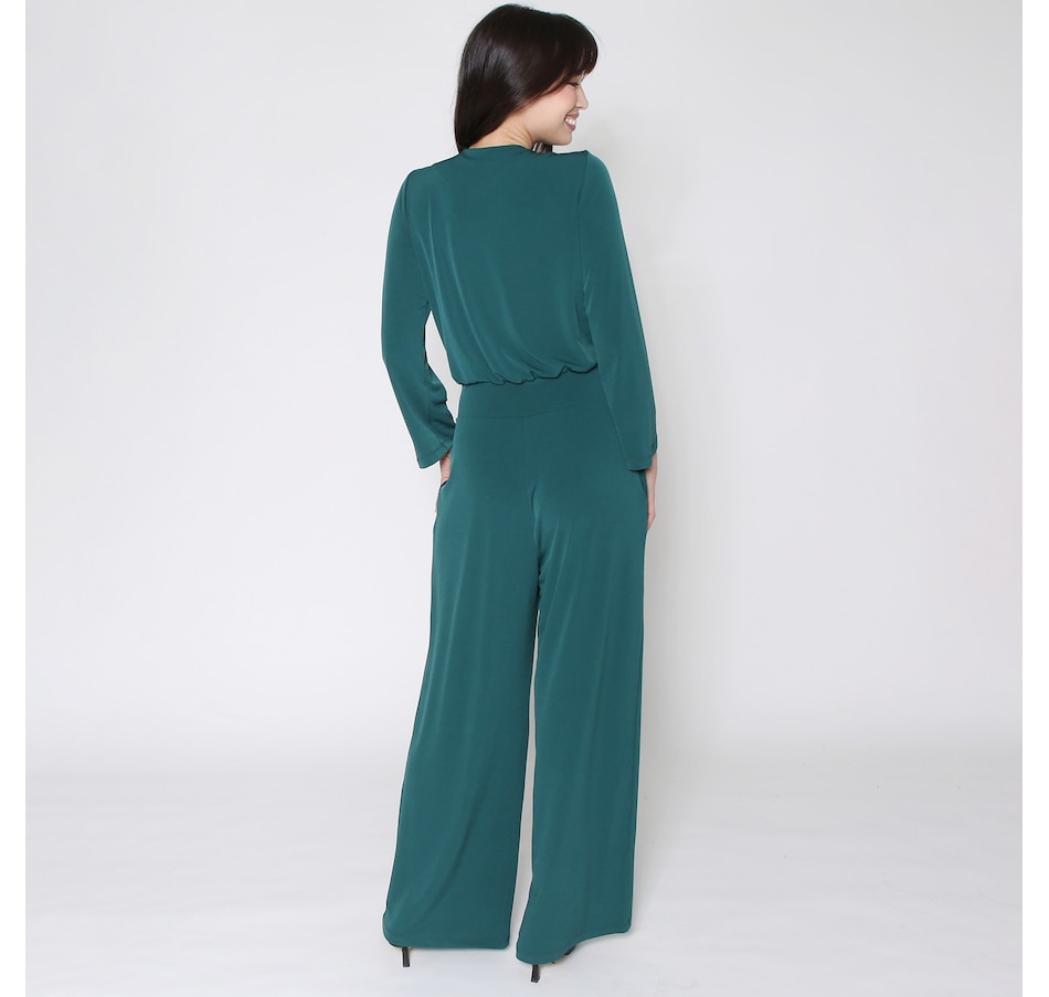 Brazil Knit 3/4 Bell Sleeve Pleated Wide Leg Jumpsuit