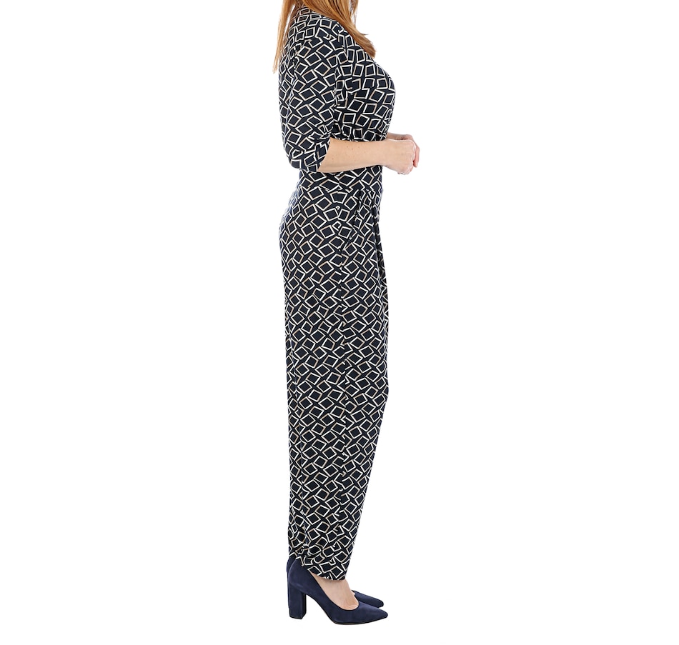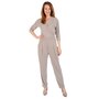 Brazil Knit 3/4 Sleeve Cross Over Pleated Jumpsuit