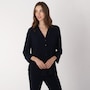 • Full button front shirt with rounded lapel collar, 3/4 length sleeve