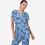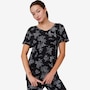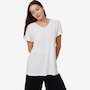 This short sleeve top from Kim & Co. features a v-neckline, dolman sleeves, and a band along the neckline and sleeve edge. It is reversible, and can be worn back to front.