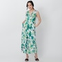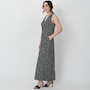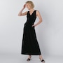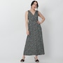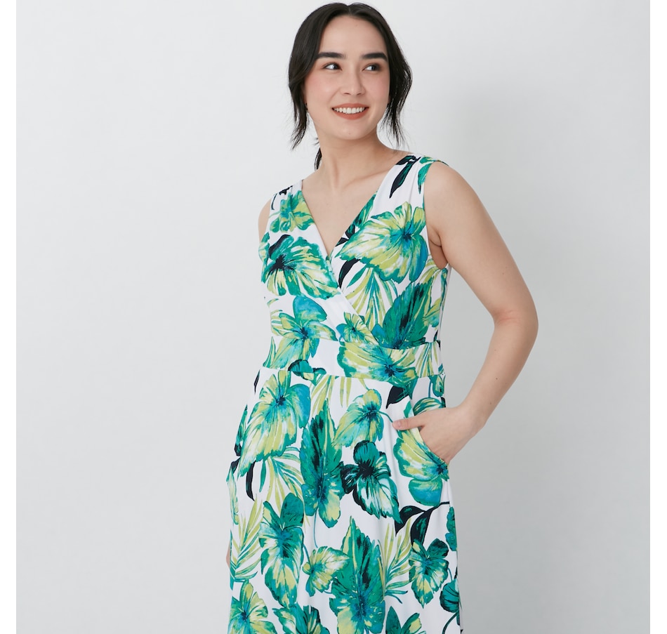 • Sleeveless, wrap front with light shirring, fitted bodice/flared hem
