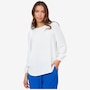 You'll centre your ensemble in elevated style with this beautiful crinkle poplin Cintia top from Kim & Co. It features a round neckline and a puffy sleeves with a gorgeous shirring at the sleeve head and hem.