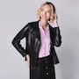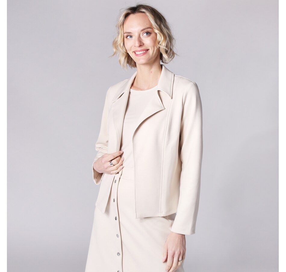 You'll finish your look in cool, trendy style wearing this croco faux leather knit jacket from Kim & Co.