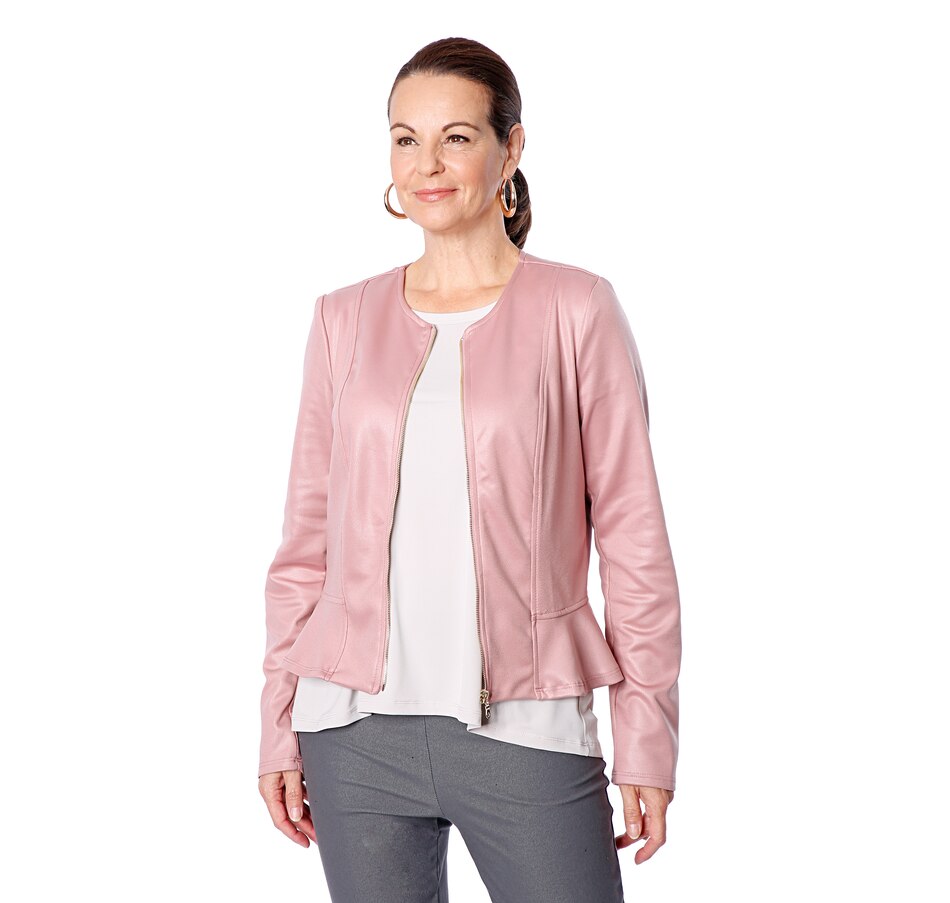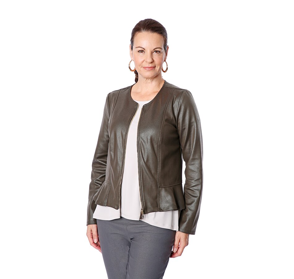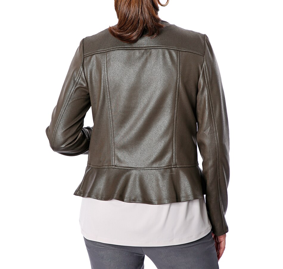 Pull your look together and add some flair to your style with this faux croco leather jacket by Kim & Co.