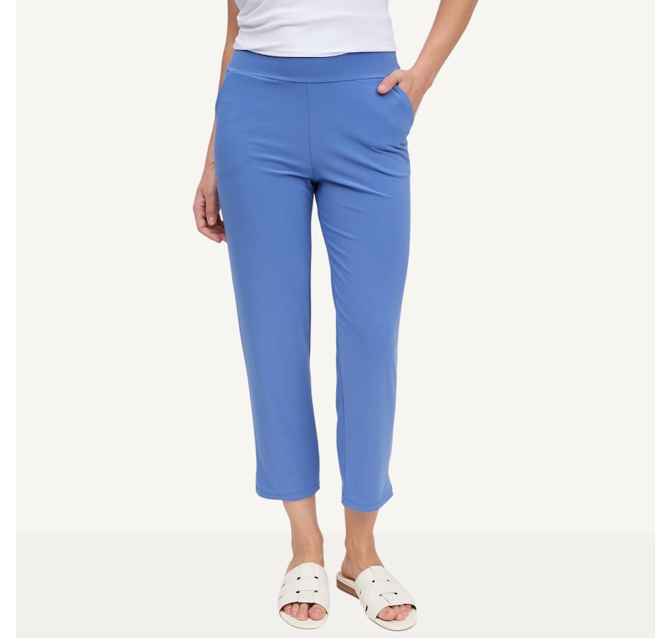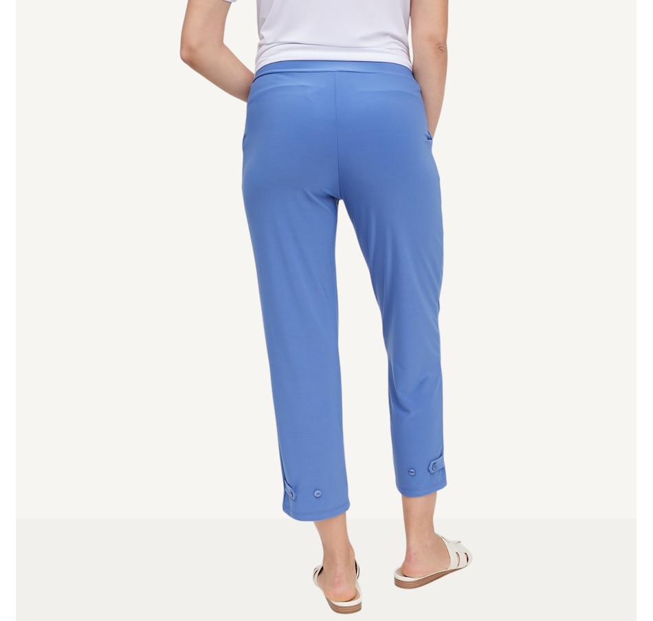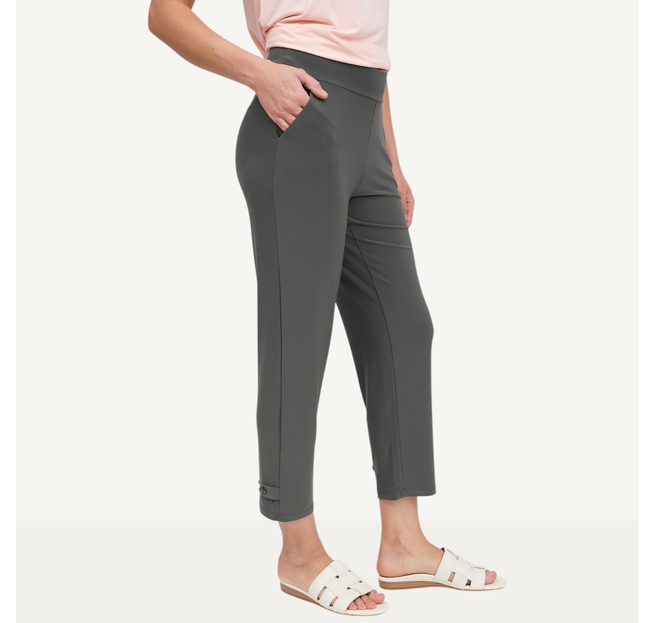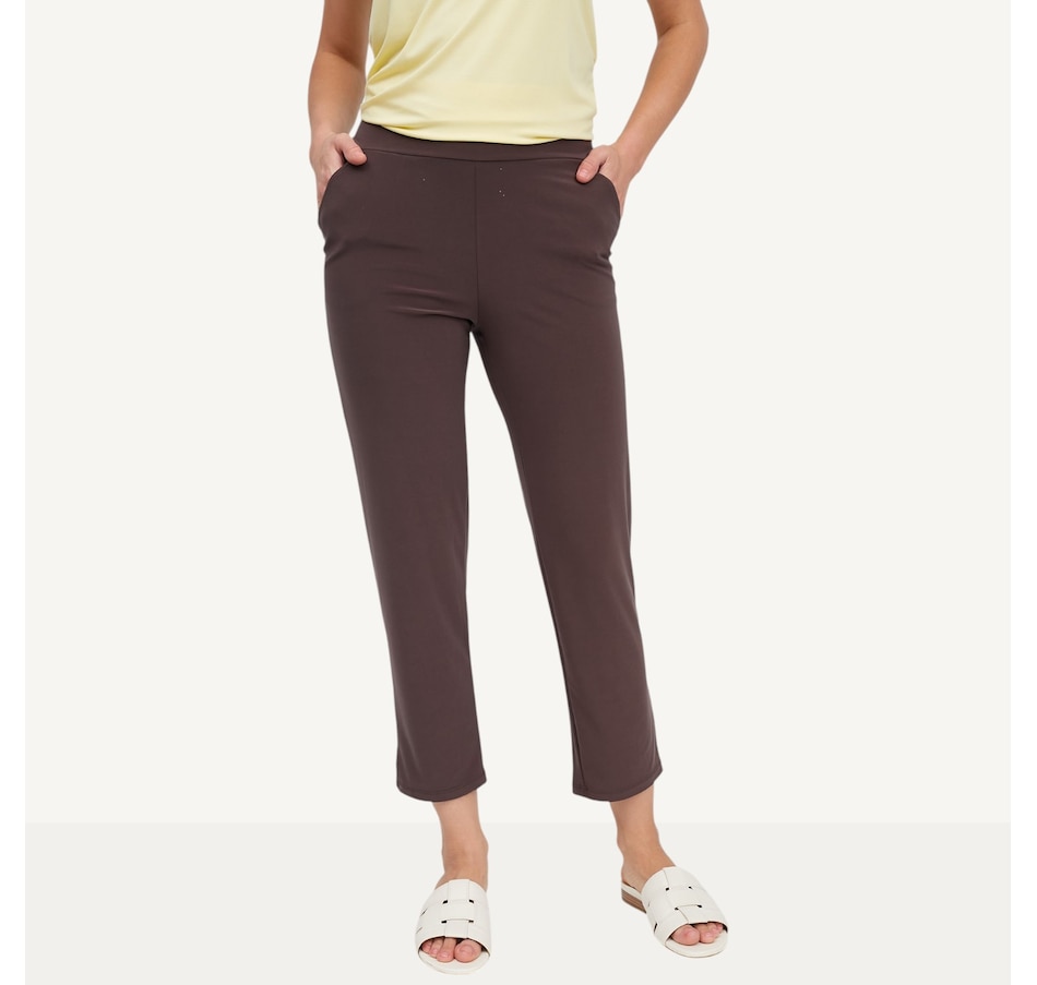 Effortlessly polished with all‑day comfort, the Kaia ankle length pant from Kim & Co is designed to move with you from morning to night. Crafted in a soft, fluid Brazil knit, this easy pull‑on pant features a comfortable mid‑rise waistband that offers a smooth, flattering fit. The narrow‑leg silhouette creates a sleek, modern look, while adjustable tab‑and‑button detailing at the hem lets you customize the style and length. Finished with practical slanted front pockets and durable double‑needle stitching, this versatile ankle‑length trouser blends comfort, function, and style all at once.