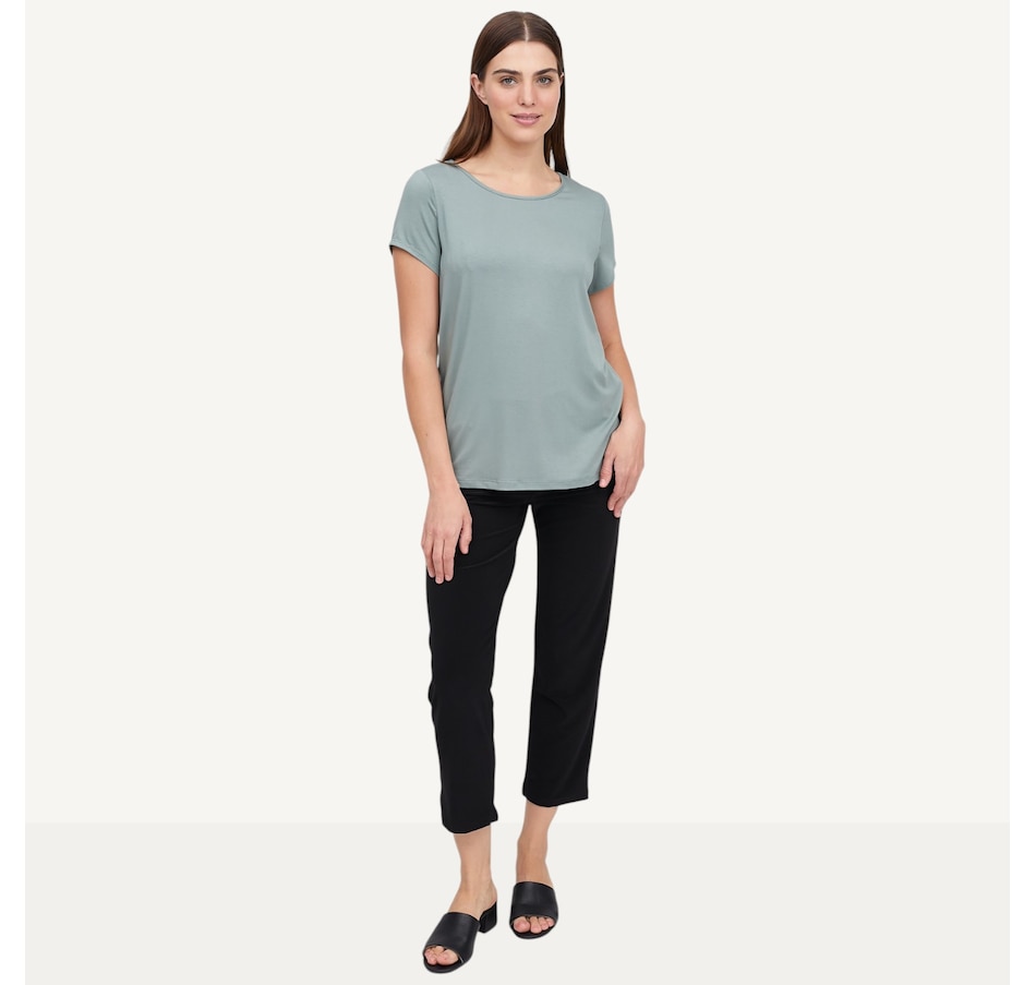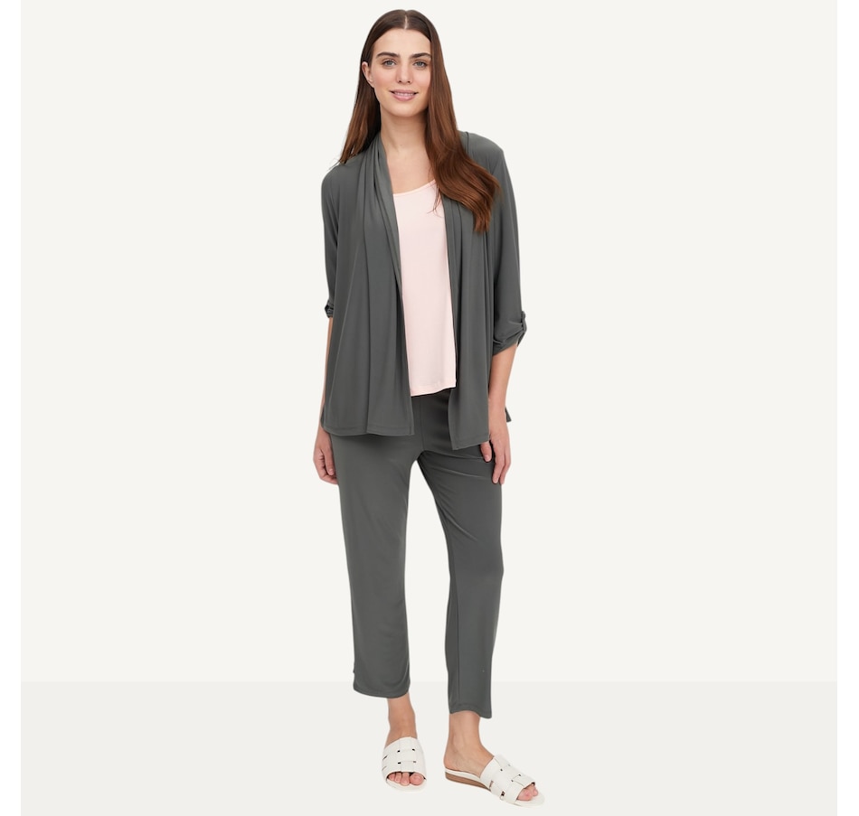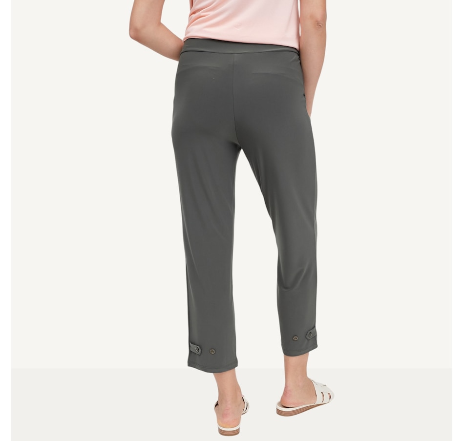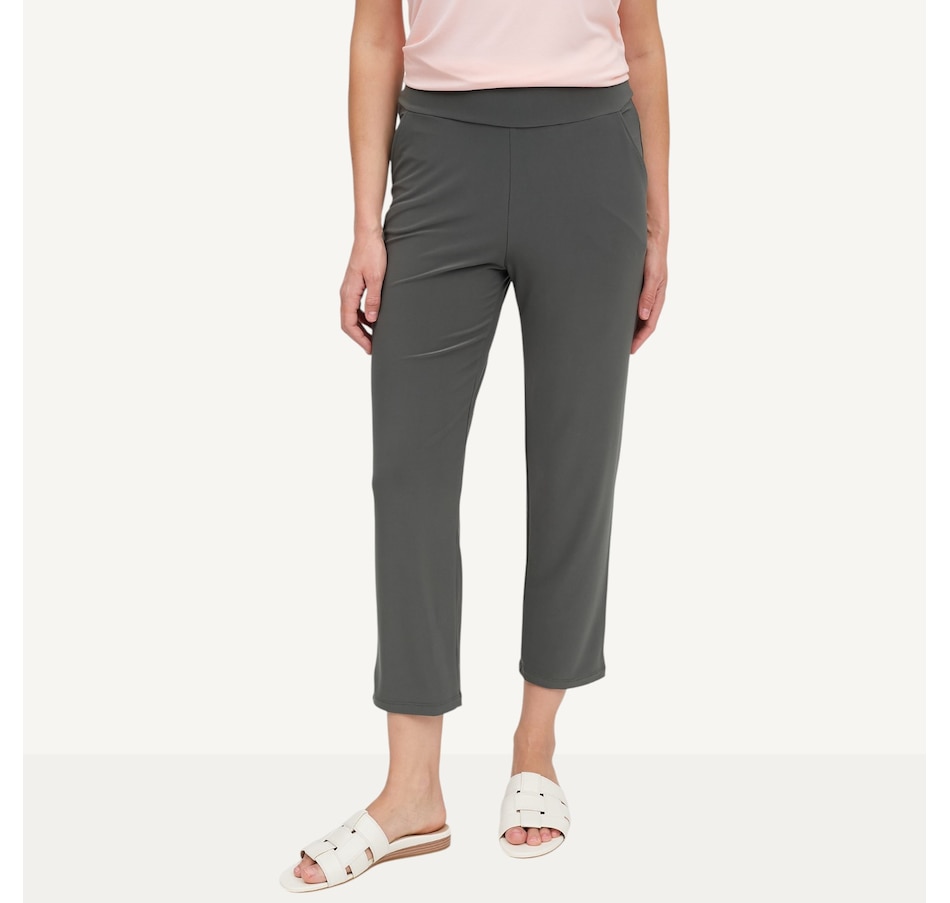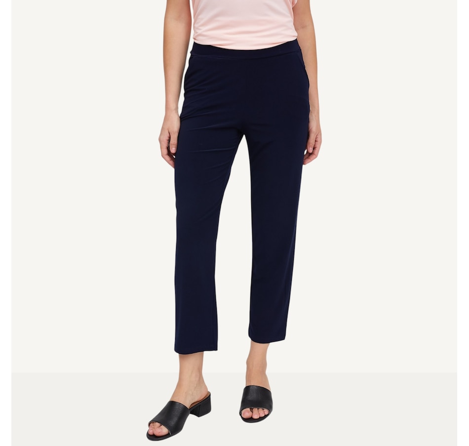 Effortlessly polished with all‑day comfort, the Kaia ankle length pant from Kim & Co is designed to move with you from morning to night. Crafted in a soft, fluid Brazil knit, this easy pull‑on pant features a comfortable mid‑rise waistband that offers a smooth, flattering fit. The narrow‑leg silhouette creates a sleek, modern look, while adjustable tab‑and‑button detailing at the hem lets you customize the style and length. Finished with practical slanted front pockets and durable double‑needle stitching, this versatile ankle‑length trouser blends comfort, function, and style all at once.