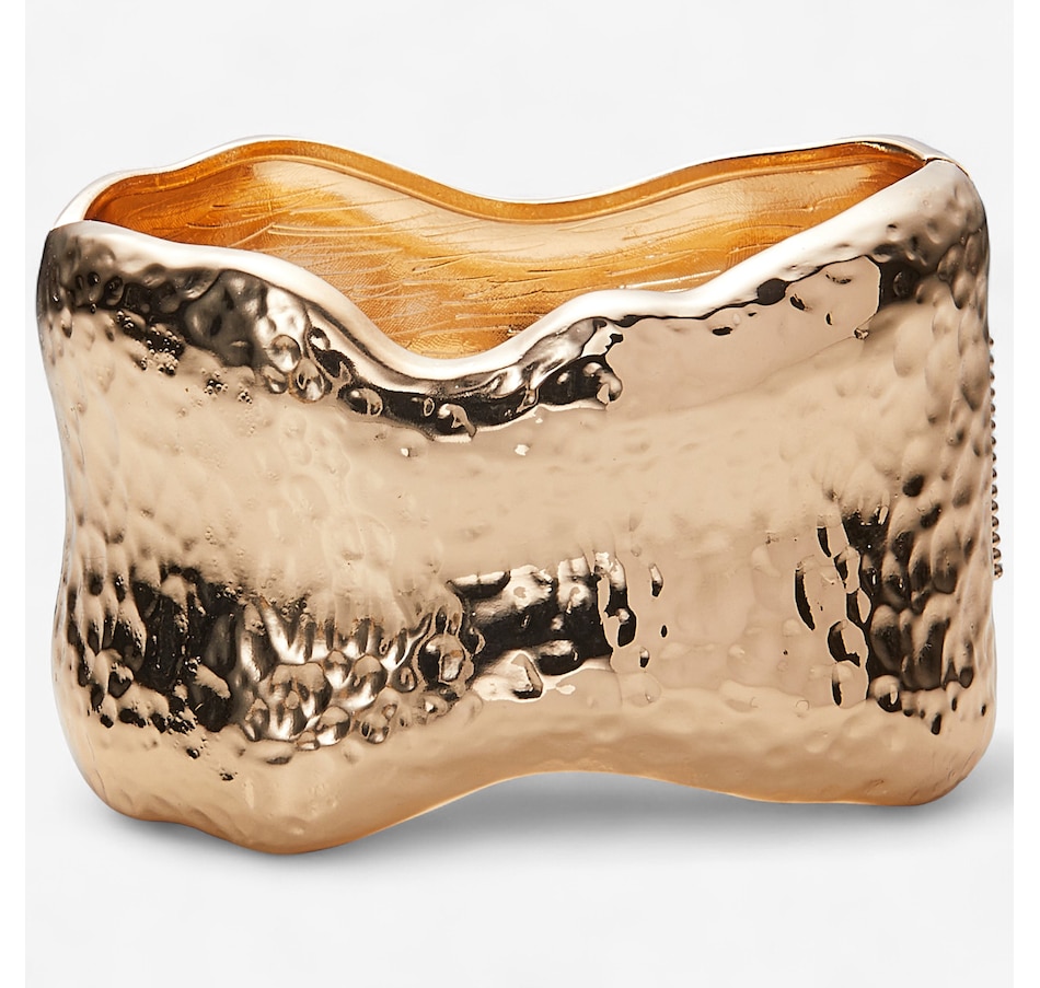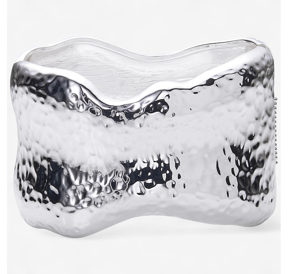 Accessorize in defined style with this hammered wide hinge cuff from Kim & Co. Available in two different sizes, it features eye-catching uneven wavey edges for a stylish finish.