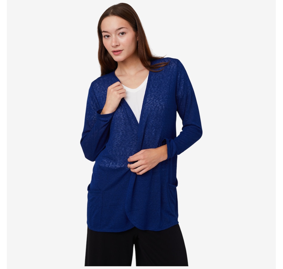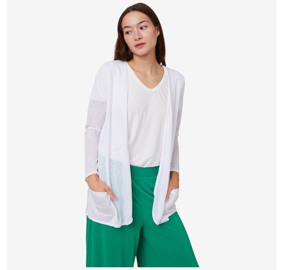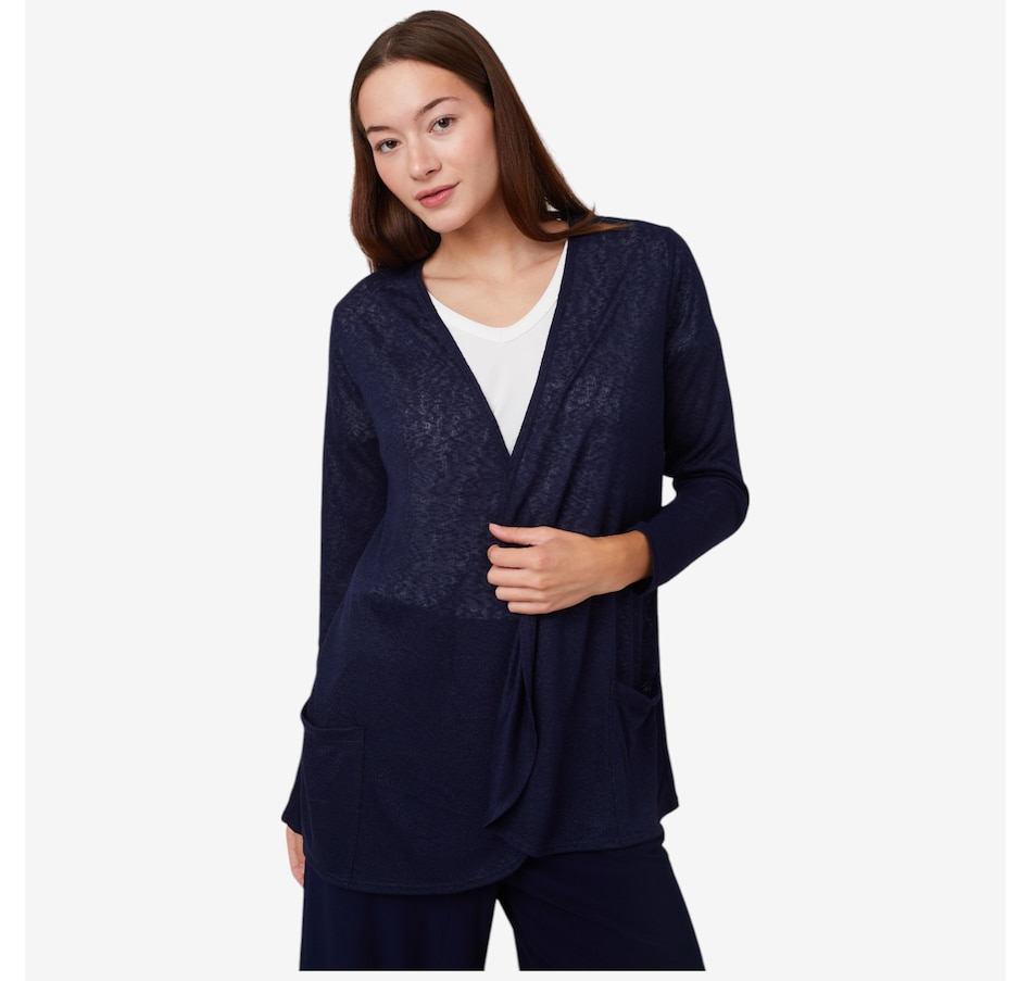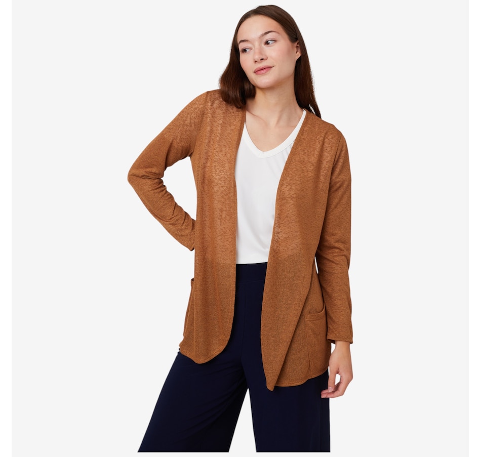 Linen Look Knit Long Sleeve Cardigan with Pockets