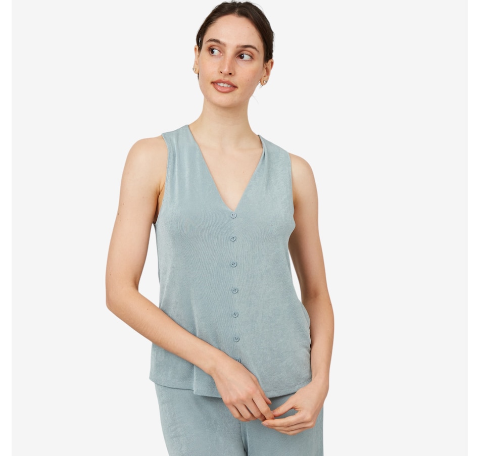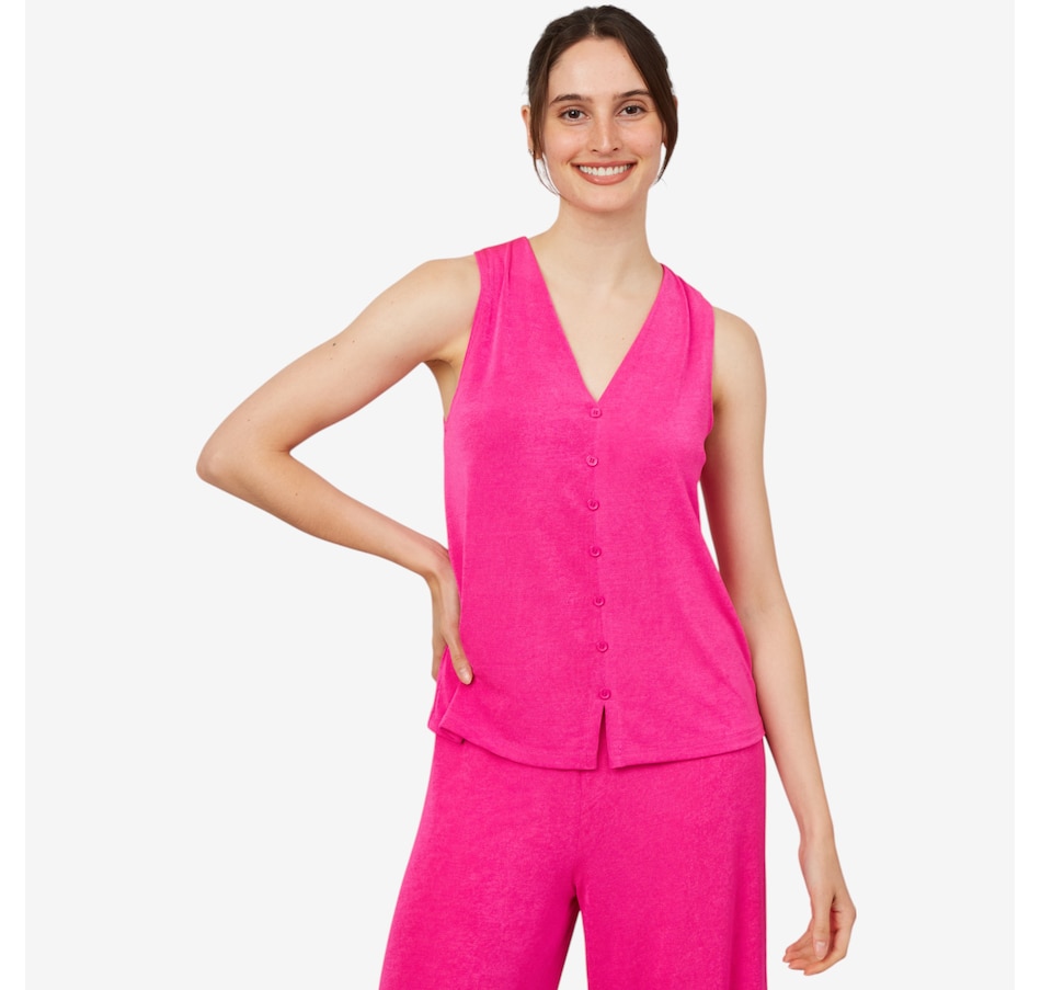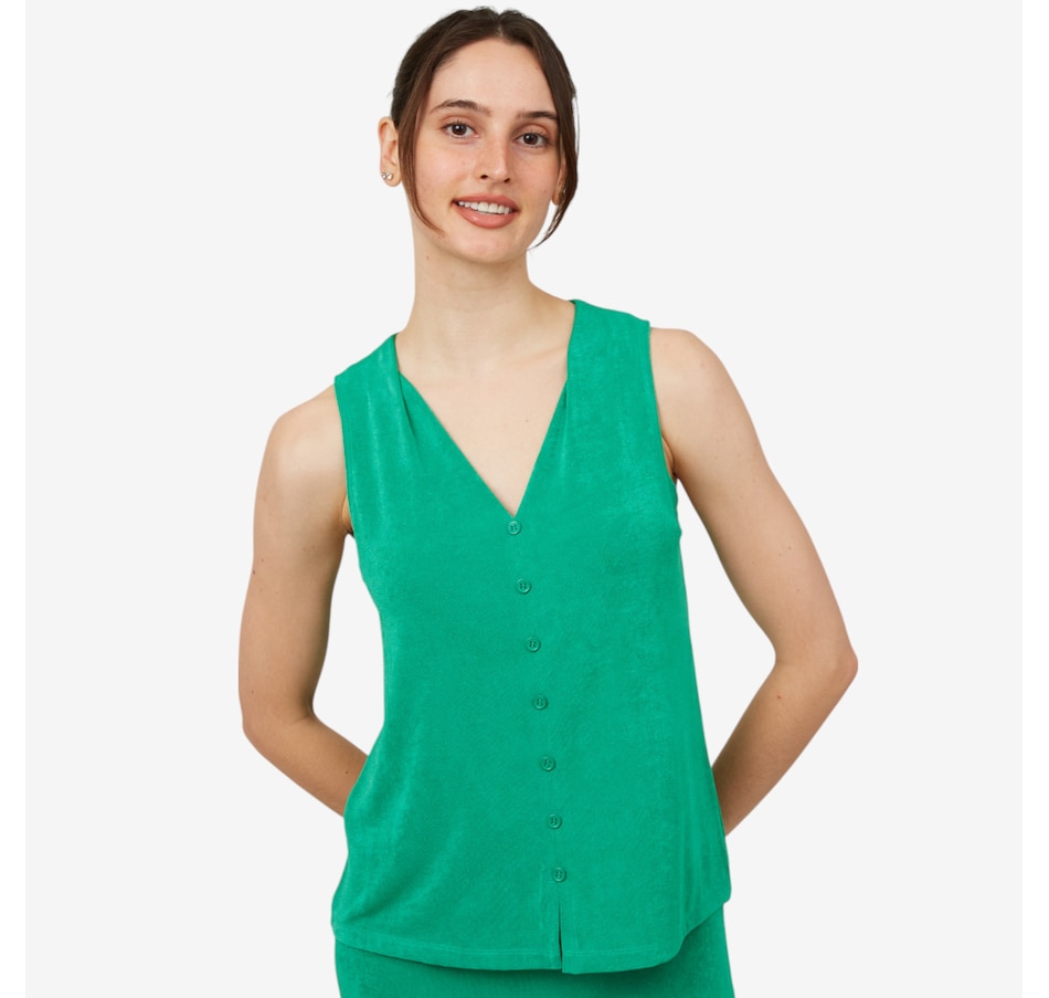 Available in a selection of great colours, you'll centre every look in style with this faux button vest from Kim & Co.