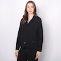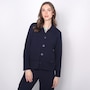 • Collar at neck, full button closure at front, patch pockets with flap at bottom hem, short length
