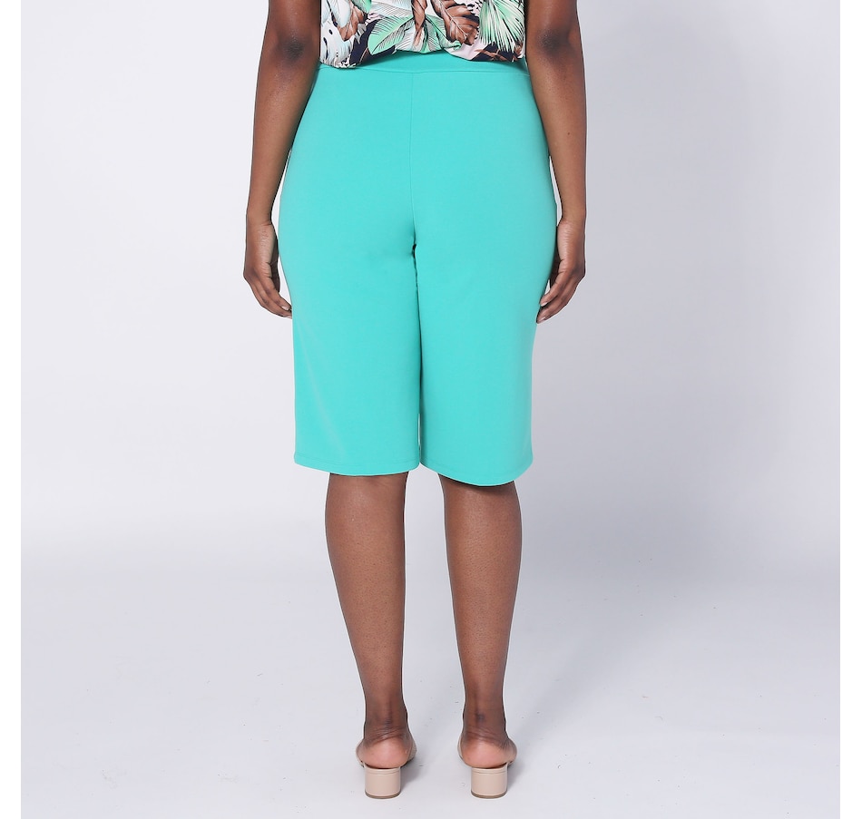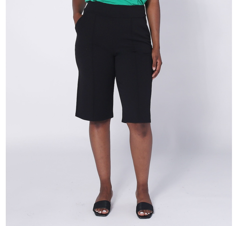 Elevate your warm weather look in style wearing this ponte crepe pin tuck city short with pockets from Kim & Co.