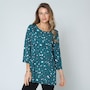 Available in a great selection of colour combinations, you'll centre every look in defined style with this fabulous 3/4 flared sleeve tunic from Kim & Co.