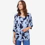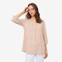• Soft v-neck, pleat and button at CF neck, 3/4 length sleeve, pull-on