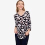 Printed Brazil Knit 3/4 Sleeve Tunic with Roll Up Tab Sleeve Detail