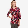 Printed Brazil Knit 3/4 Sleeve Twist Neckline Keyhole Top